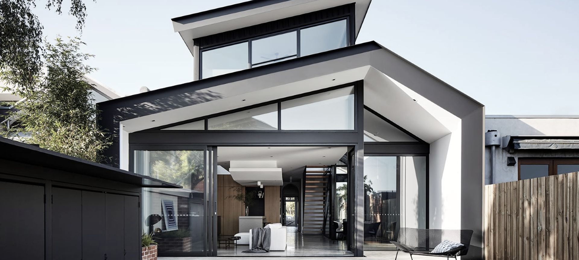 A fabulous home, characterised by bold lines and offset angles. The Chisel house is revitalises an existing heritage dwelling with the addition of a contemporary two storey addition. The addition discreetly transforms the attached double fronted Victorian house in to a spacious, light filled home, on the typical compact Inner Melbourne site.