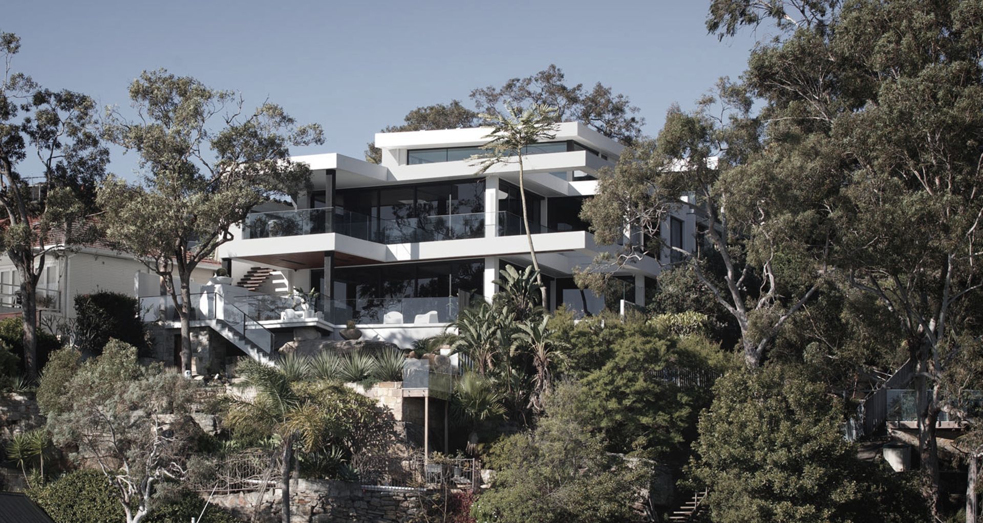 Cascading down a steep hillside over three levels down to the water, Oyster Bay House takes advantage of its glorious views over Sydney’s Georges River at every opportunity.