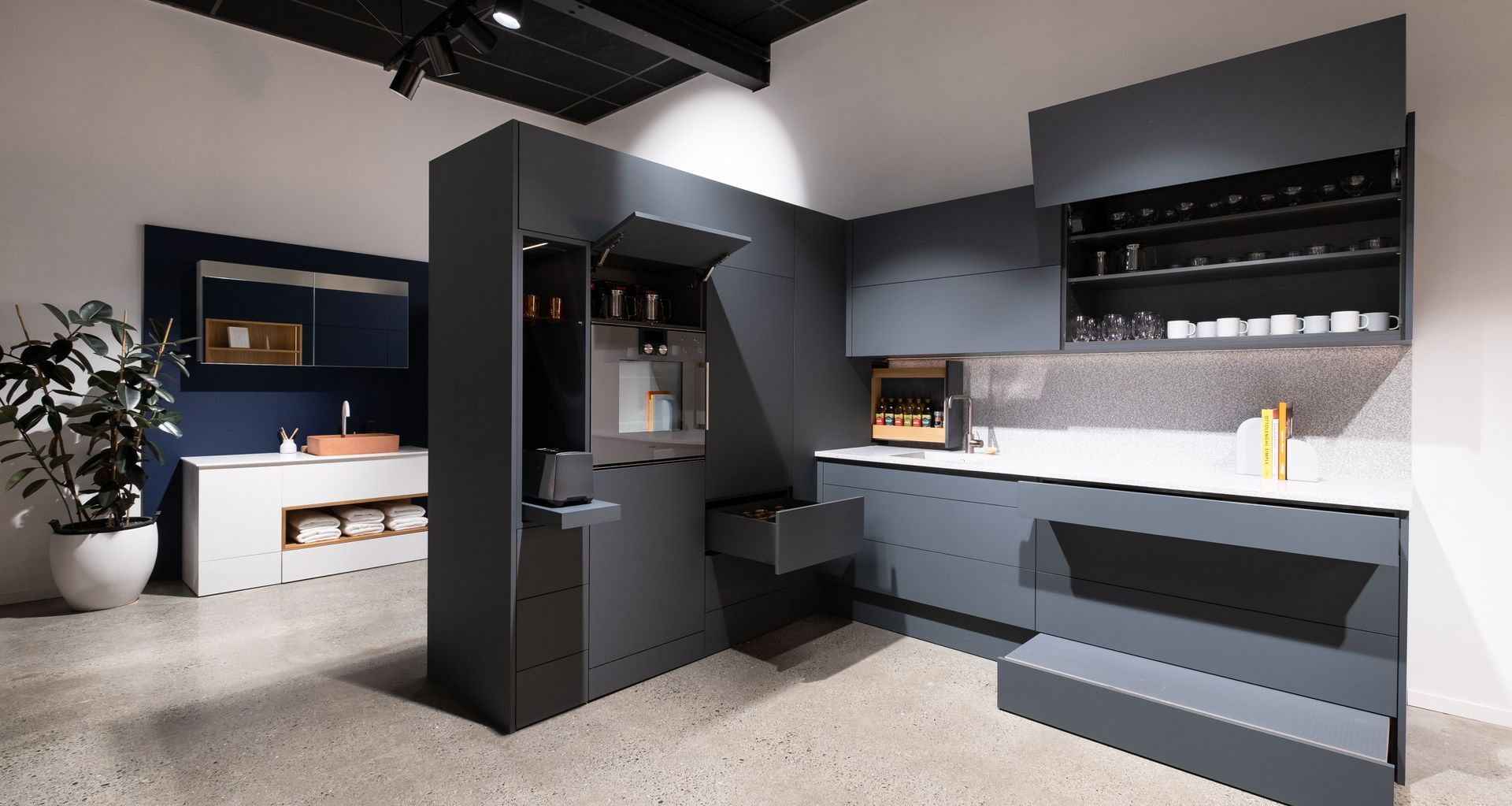 “It’s a purpose-designed space with Blum products set up in a range of ‘rooms’ so you can see how our quality products, such as MERIVOBOX and LEGRABOX drawers or AVENTOS lift systems look, feel and operate in situ. It’s tactile, so you can also feel the way motion technologies work and how they function.