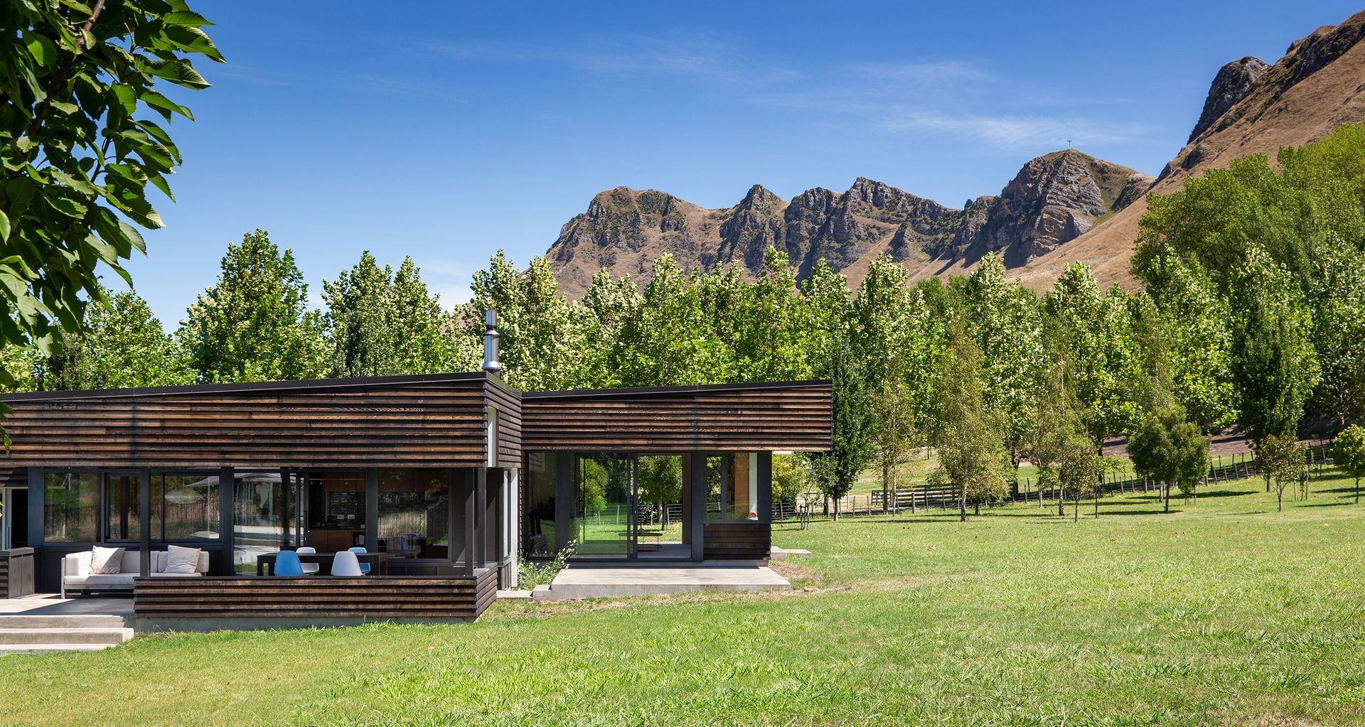 The site sits below the gentle lower slopes of Te Mata Peak. The highest in the area, the mountain has spiritual significance to local Māori, as the resting place of Rangokako, the ancestor of the Ngāti Kahungunu iwi. “The mountains sit above the valley and the Tukituki River meanders across the flat, stony plane. It creates these tapestries of stone and river throughout the landscape,” Gerald shares.