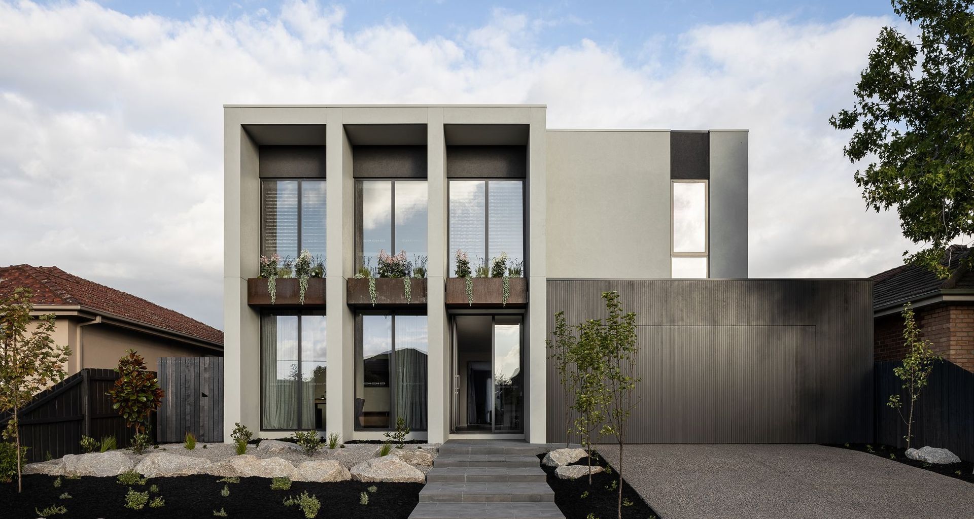 The Contemporary Residence is a family home with a striking street-front presence. The home allows for entertaining and relaxation with four bedrooms, a study and three living spaces. The generous dining area and kitchen bench provide for large gatherings.