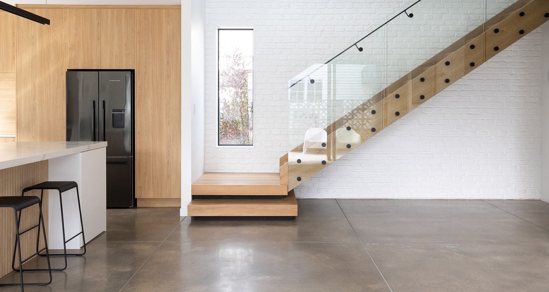 In an otherwise simple space, Muros White Loft Brick panels have added interest and style to this home, giving it a contemporary feel. Wooden elements add to the brick panels, emphasising the natural elements in the staircase space. Painted here in Resene Alabaster to create a chic, airy impression, you could also paint the brick panels in a bold black like Resene Nero, or a warm, earthy red like Resene Cumin.