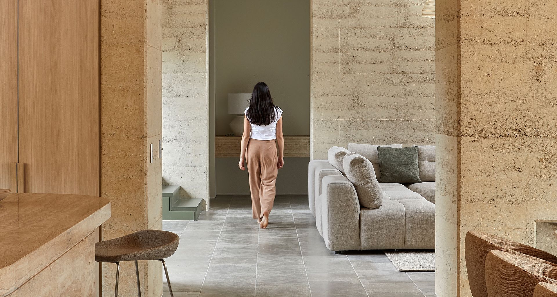 The Ray Coffee Table plays with layering, combining marble and wood to create a striking interplay of colour and texture. The rounded top rests gently within the double-layered legs, with softened edges adding a refined touch.