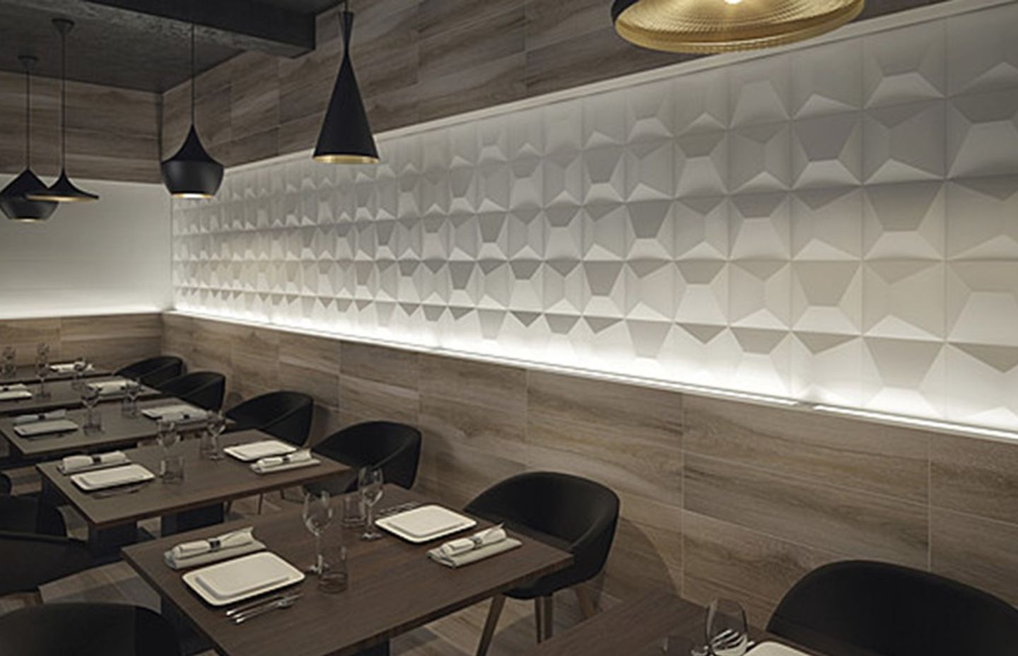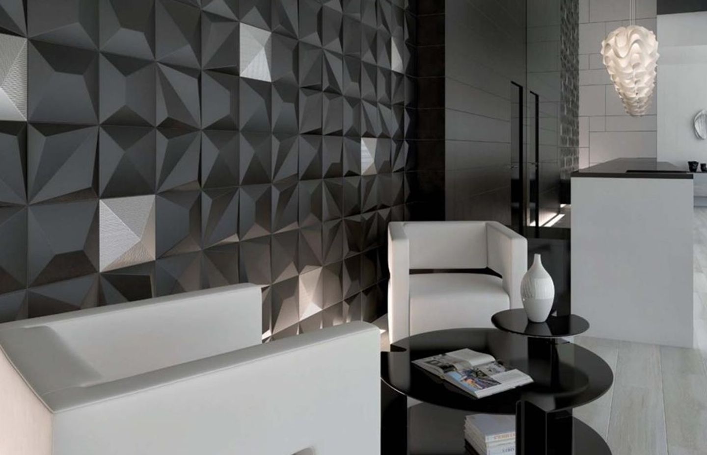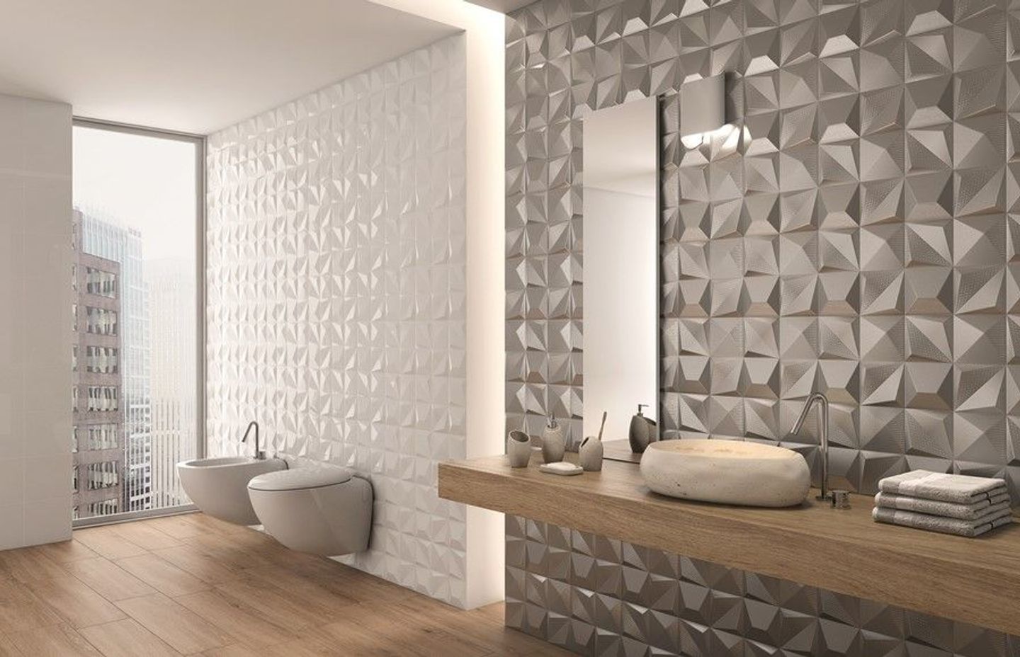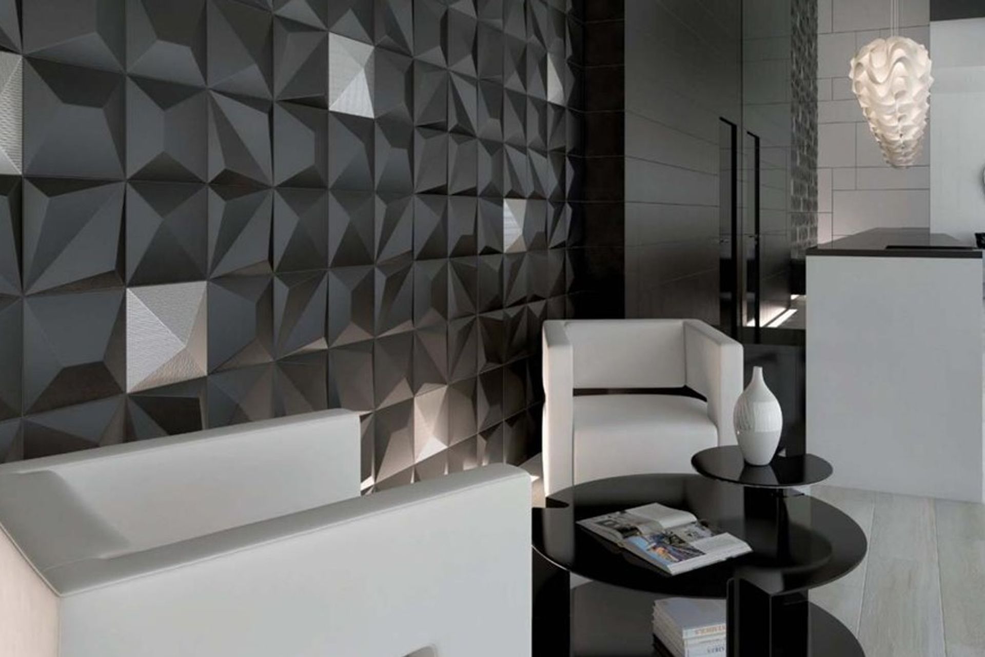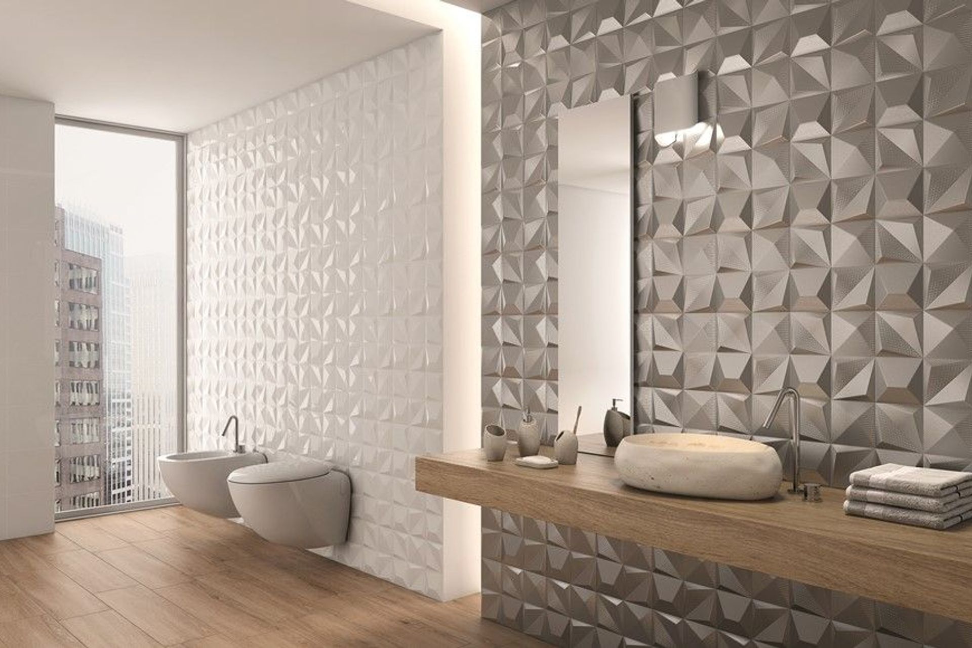Exclusive to Tile Warehouse, the stand-out features of this extensive 3D range are the varying colours — from darkest black to gold, and the pattern diversity, mean there are plenty of ways to pep up hardworking and utilitarian rooms, such as bathrooms.