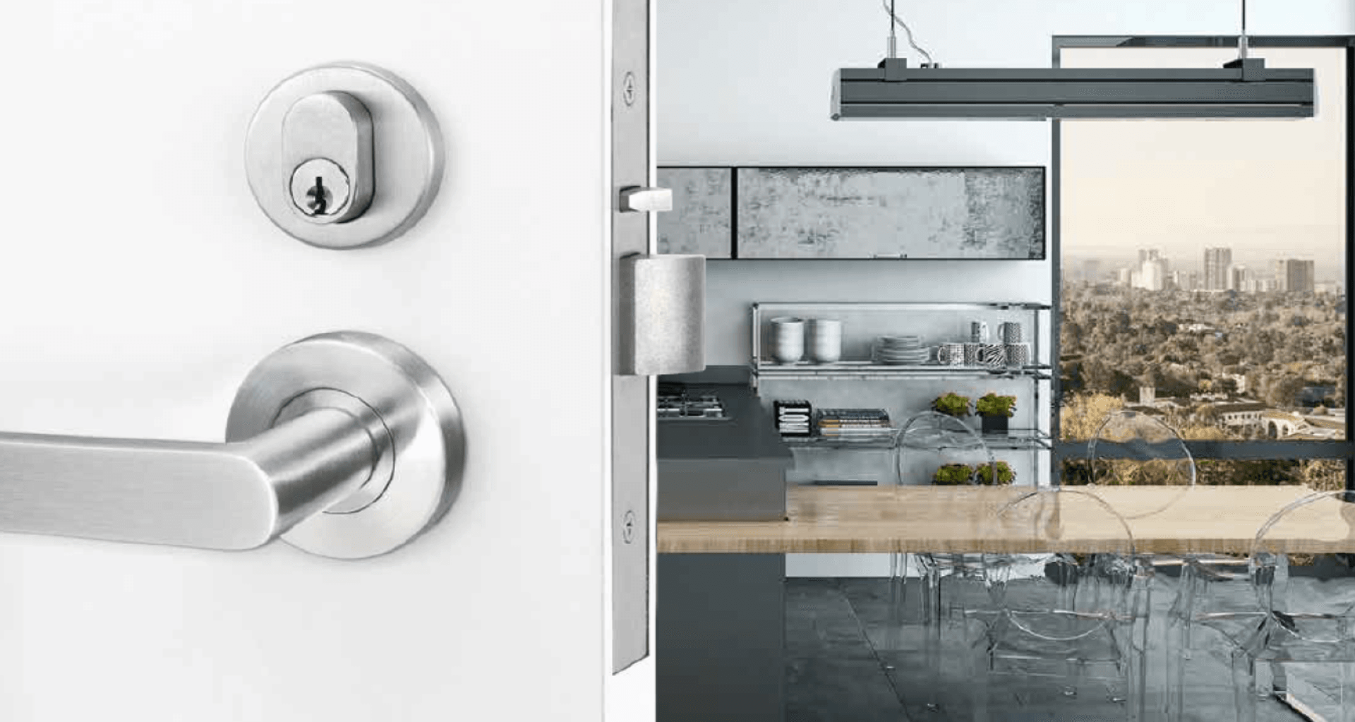 The product consists of a complete hardware package, including an entry kitset with a fire-compliant lock that closes the door; a closer—that’s also fire compliant—and handles and escutcheons (the piece of metal that protects the door handle) to be used with the lock. It is complemented by passage lever sets (for standard internal doors) and privacy lever sets (for bathrooms).