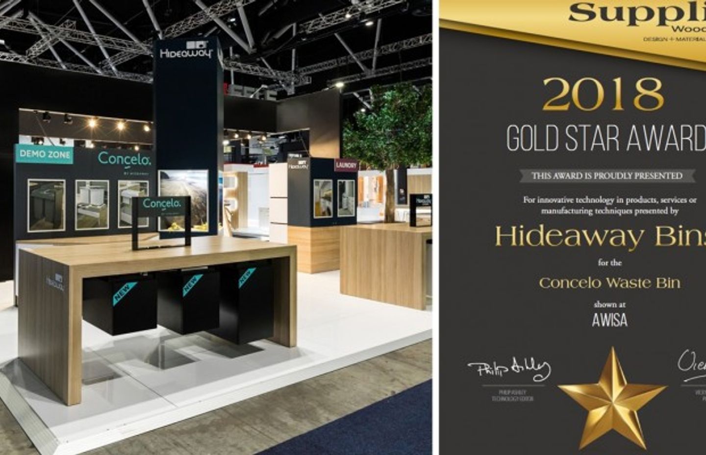 Of the 6 Gold Stars awarded following AWISA, Concelo was the only hardware product to receive the award. As a New Zealand family owned business, being judged alongside the best international hardware brands and receiving this award is a huge accomplishment for the team at Hideaway Bins. It recognizes the level of innovation that has been developed and engineered into the new Concelo range.