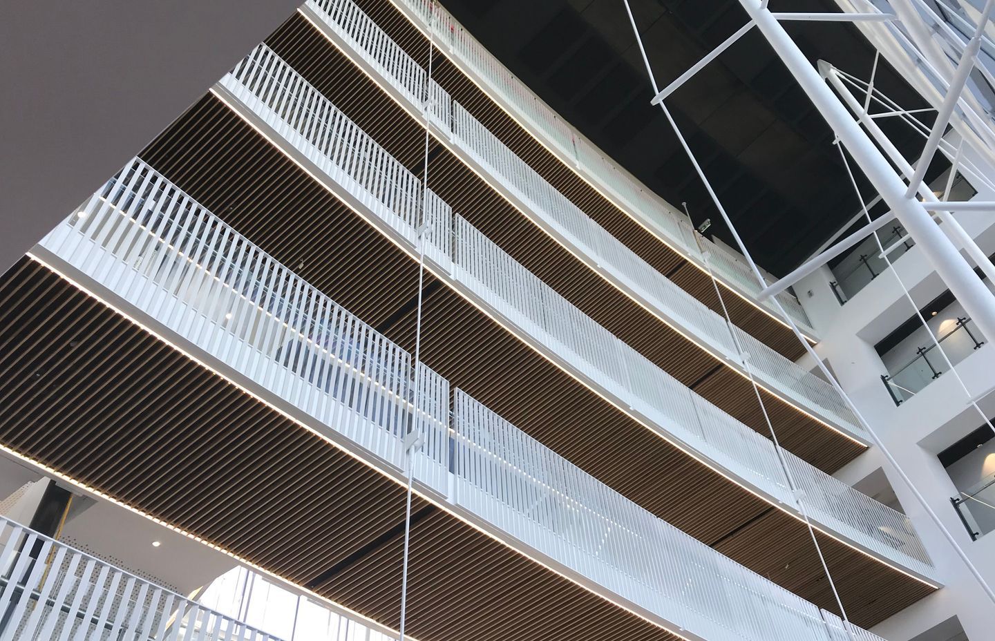 Timber battens are currently on trend, but Architects are struggling to comply with fire requirements and staying within budget when using timber. Create a dynamic, elegant and striking space that looks like timber battens with DécorSlat panelised slat systems that allows timber panels to be used in spaces that they previously could not be due to fire requirements, DécorSlat panelised slat system is the ideal cost-effective fire rated solution.