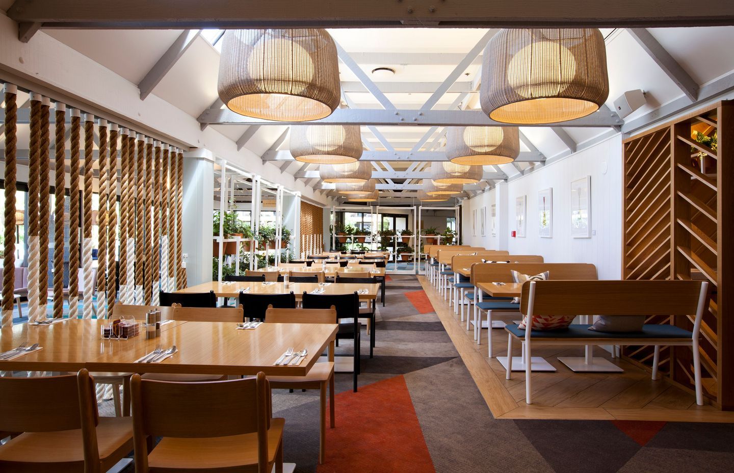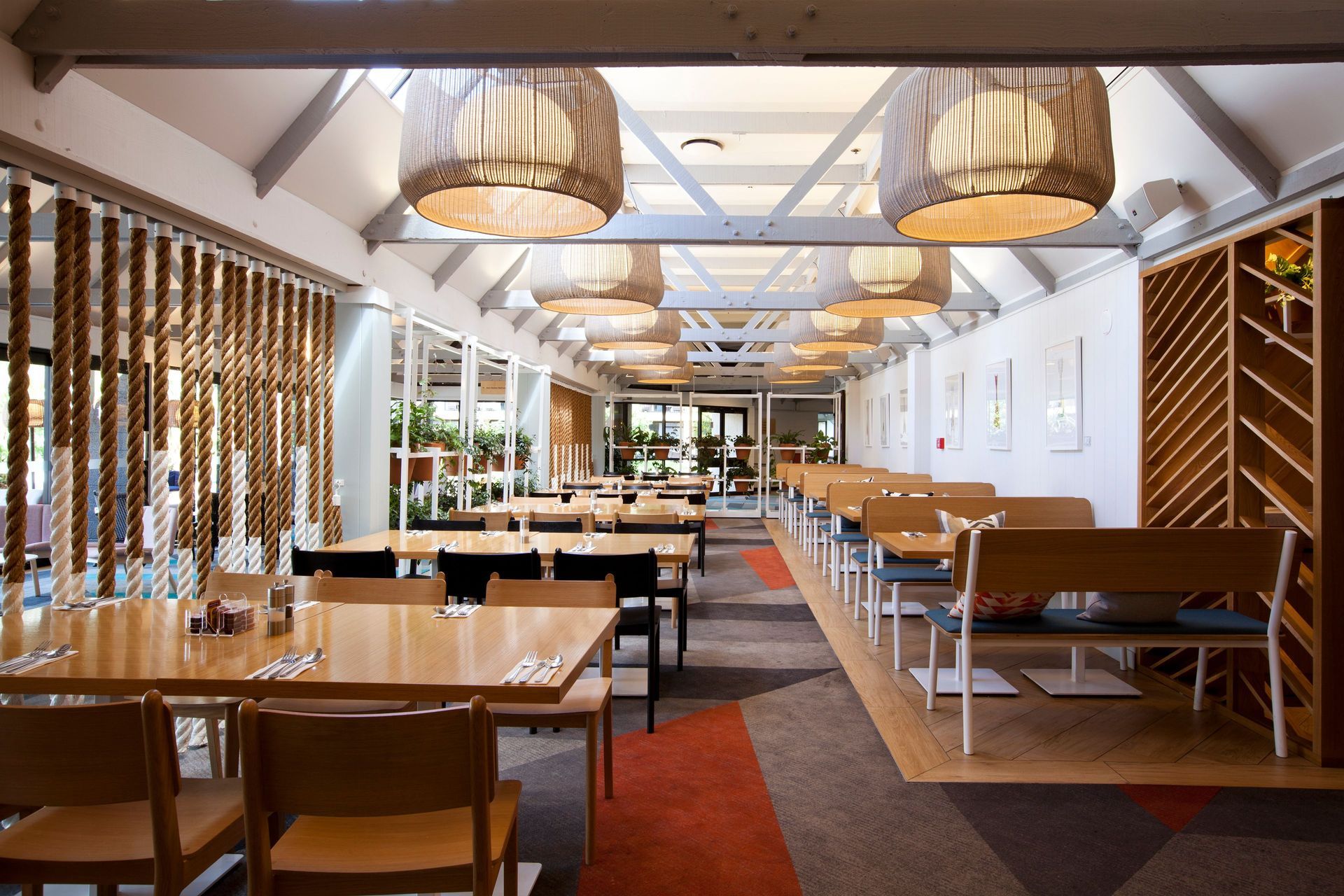 The result was a bespoke flooring design incorporating six different colours in a dynamic geometric layout reminiscent of the traditional herringbone design of wooden floors. “By selecting a palette of six different colourways, the carpet design was utilised as a central feature of the hotel’s interior spaces, as well as for wayfinding and creating definition between open-plan spaces of the hotel. That meant utilising different colours for areas such as the lobby, the restaurant and the conference rooms, as well as different tones for each level of the building to provide guests an instant familiarity with their floor.”