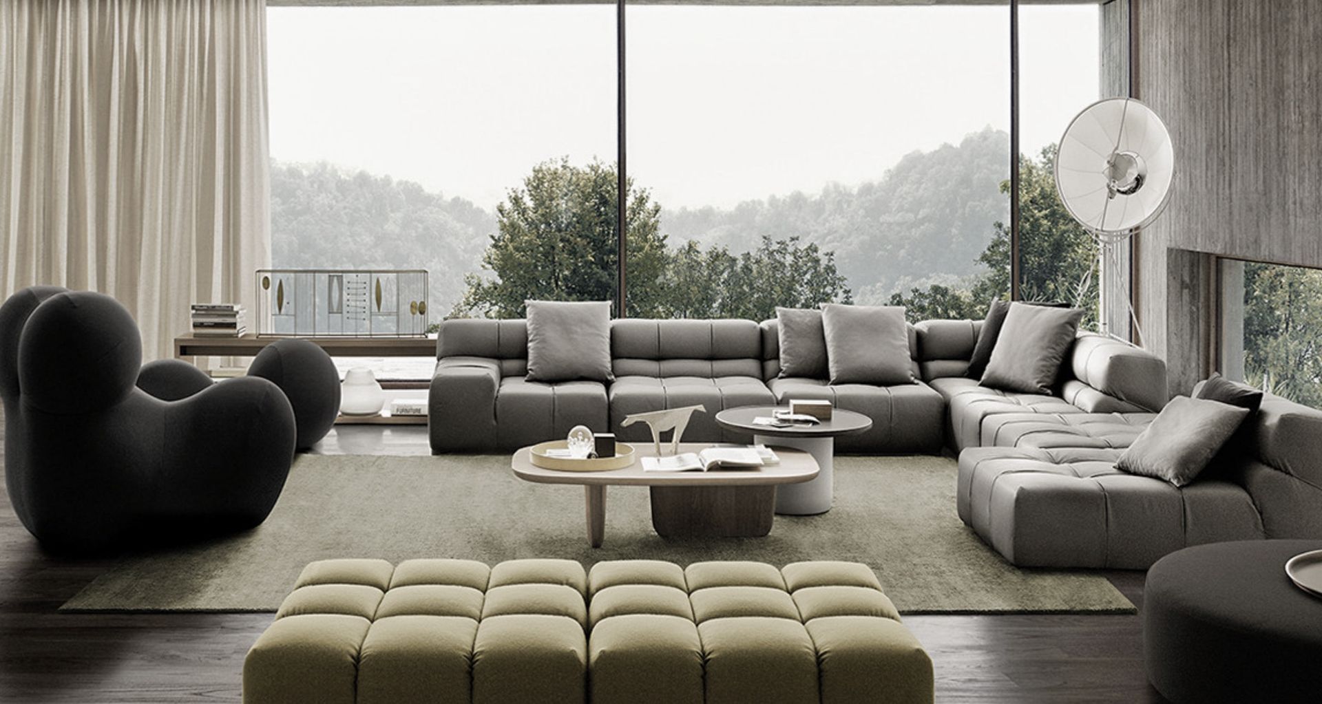 Consider the Bubuland Home Louis Ball Cushions in boucle. While they look at home in elegant and sophisticated settings, their playful and downright cuddly appearance brings a sense of warmth and comfort to any space, making a house feel like a home. Similarly, the modular Space Furniture Tufty-Time Sofa is at ease with the natural material palette of its surroundings, however, also wouldn’t look out of place in a Disney or Pixar movie.