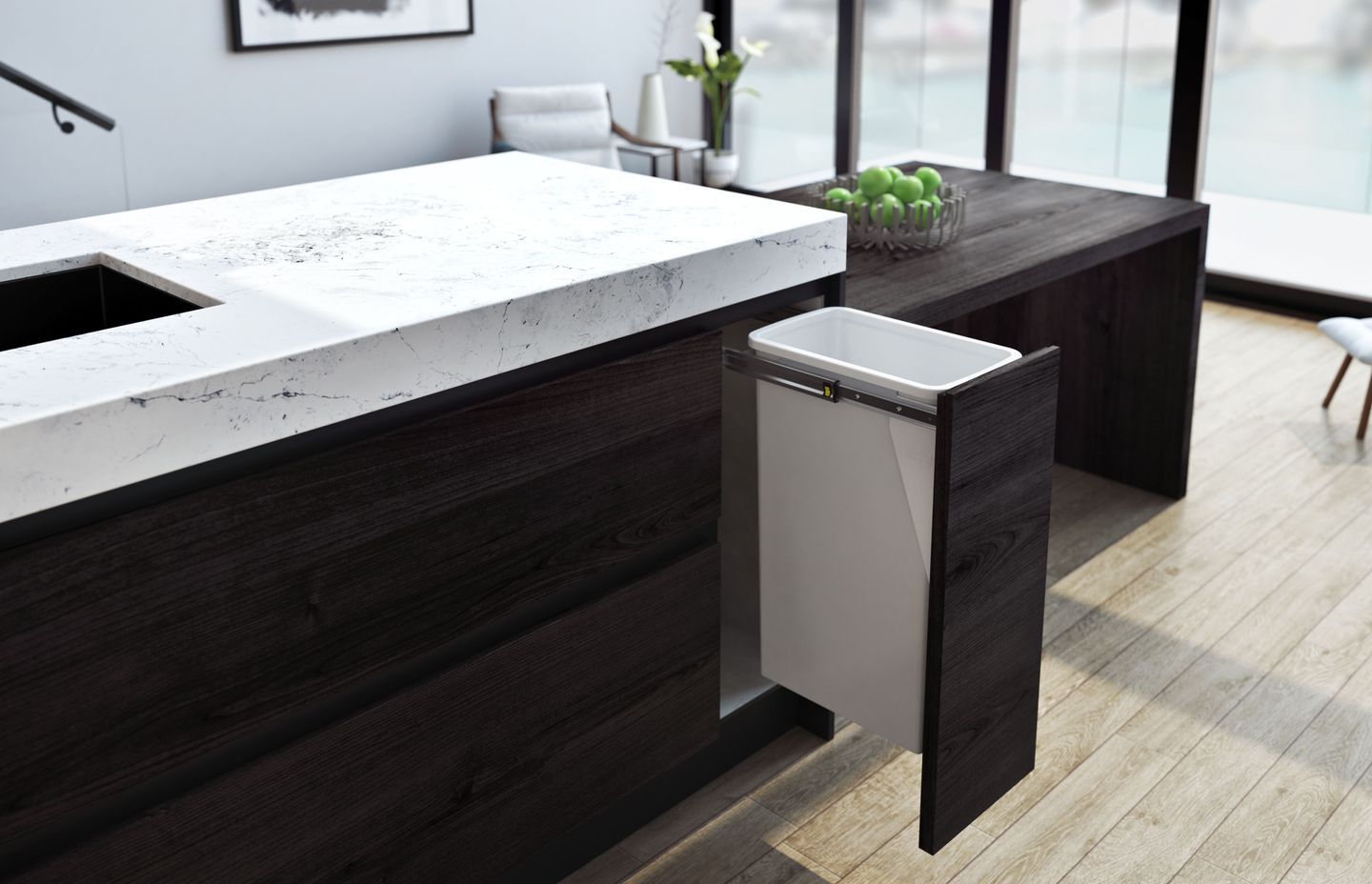 This bin is the newest addition to the Hideaway Compact range, where the top mount panel acts as a cover for the bucket. The high quality steel framework is top mountable and includes additional side mount supports for rigidity. Available as either a door pull or handle pull.