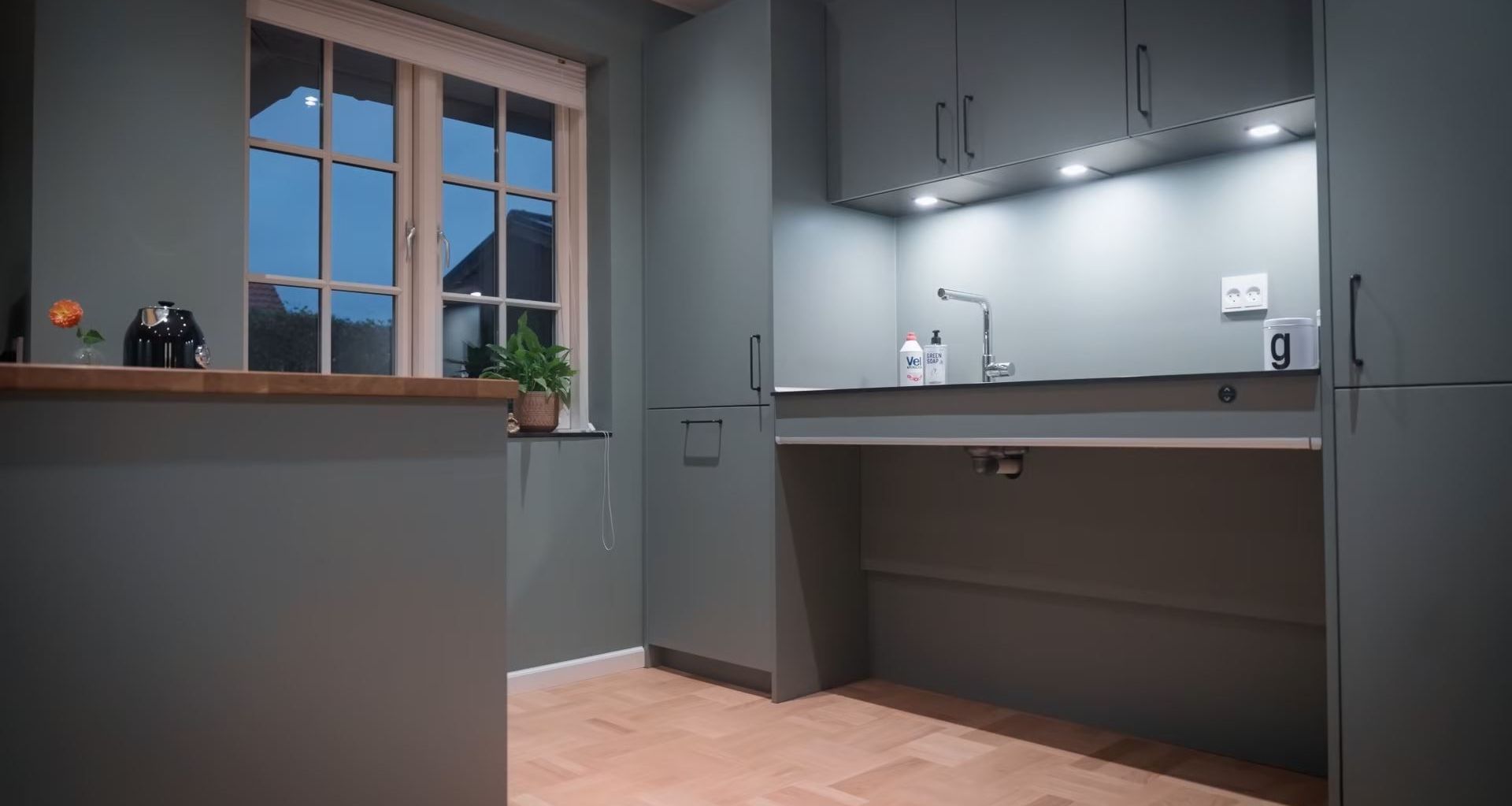 A kitchen with electrically powered height adjustment is ideal for situations with several users with varying needs. This makes it suitable for private homes with seated and standing users, as well as for nursing homes, teaching kitchens and similar facilities.