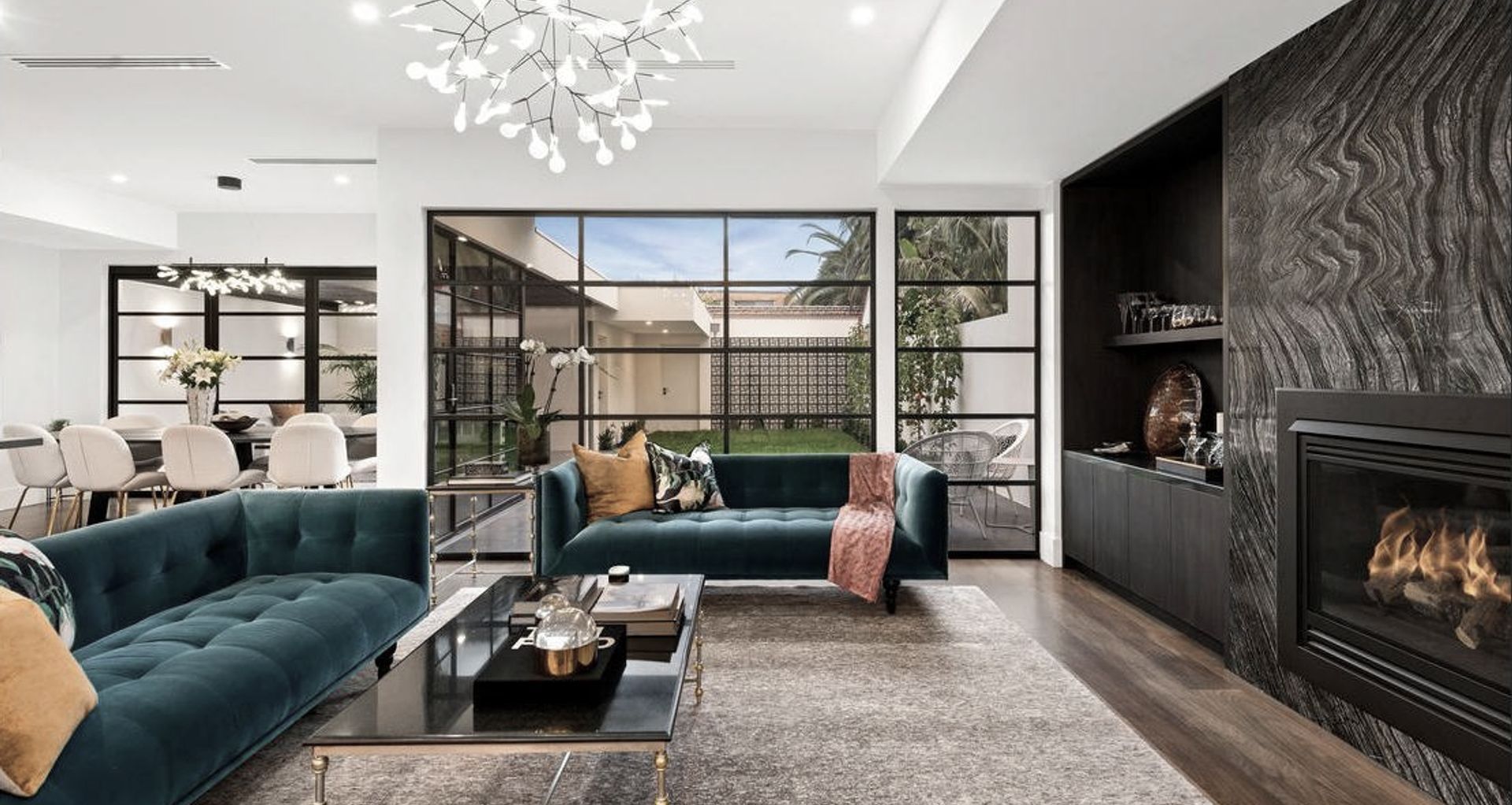 The use of luxurious materials such as velvet, silk and mirrored surfaces is a defining characteristic of Hollywood Regency design. These materials add a sense of glamour and opulence to the space, reminiscent of the homes of old Hollywood starlets.