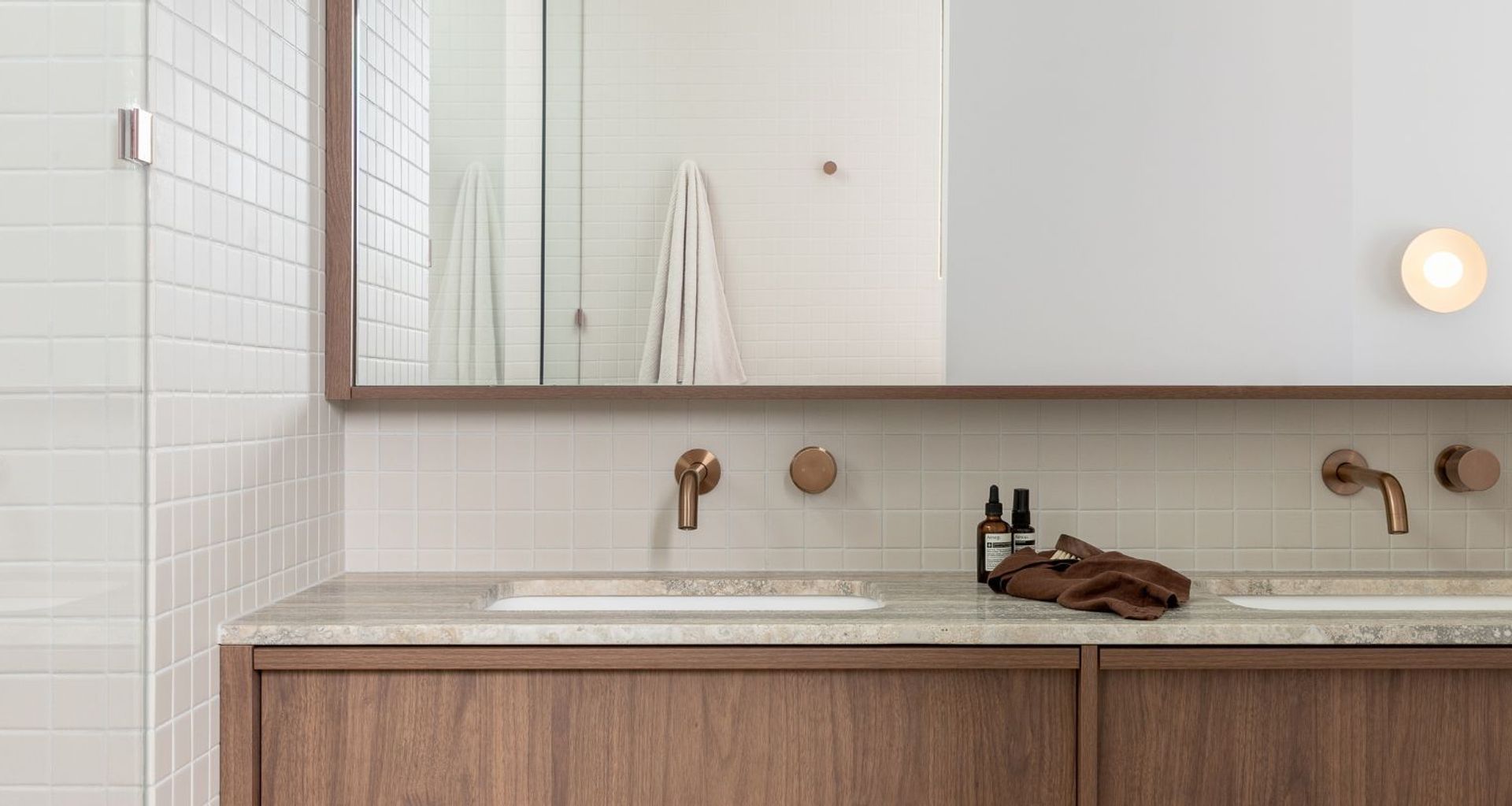 “Lately, we've been loving rich, earthy tones such as beige, warm brown, and muted terracotta to create a cosy and grounded feel in the bathroom. These shades pair perfectly with organic materials like timber and stone and finishes like our brushed copper.”