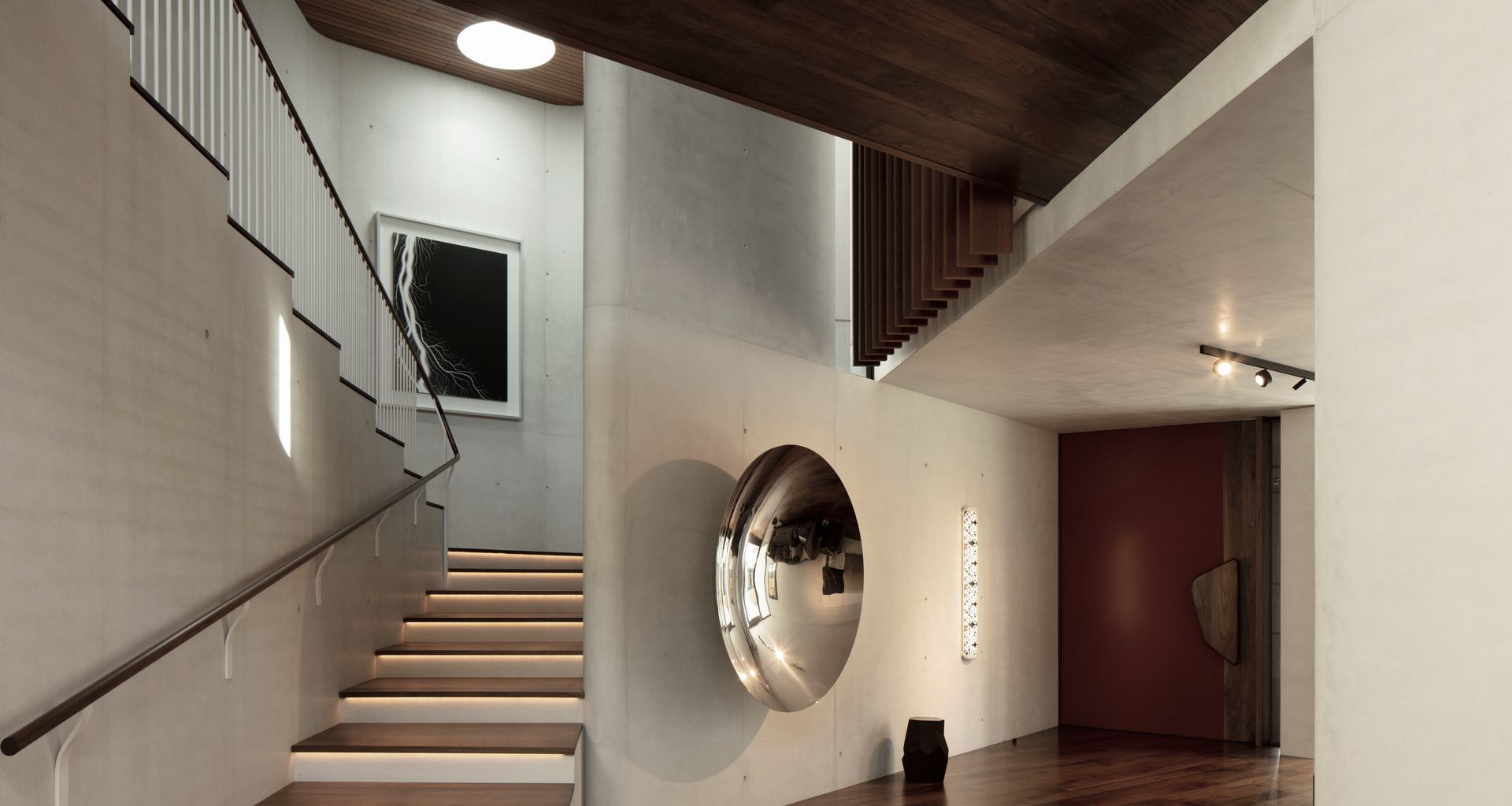 The combination of cedar, ply ceilings, copper and concrete walls and ceilings reflects a textural and authentic materiality throughout the home.