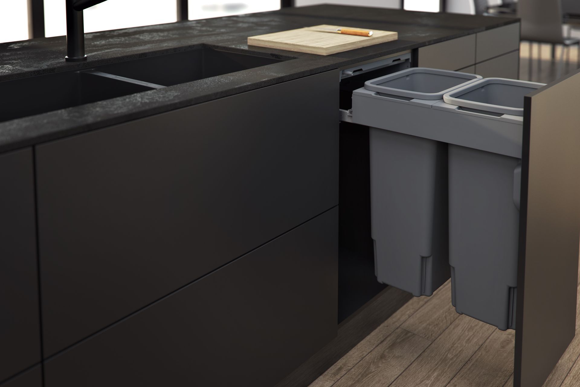 Available in 2 colour options; Arctic White to match ever popular white drawers, or Cinder to suit the growing trend for darker coloured hardware. Concelo is also compatible with electronic push to open mechanisms. When combined with the Active Lid, you now have the perfect hands-free waste bin solution! There is no other bin in the world like it!