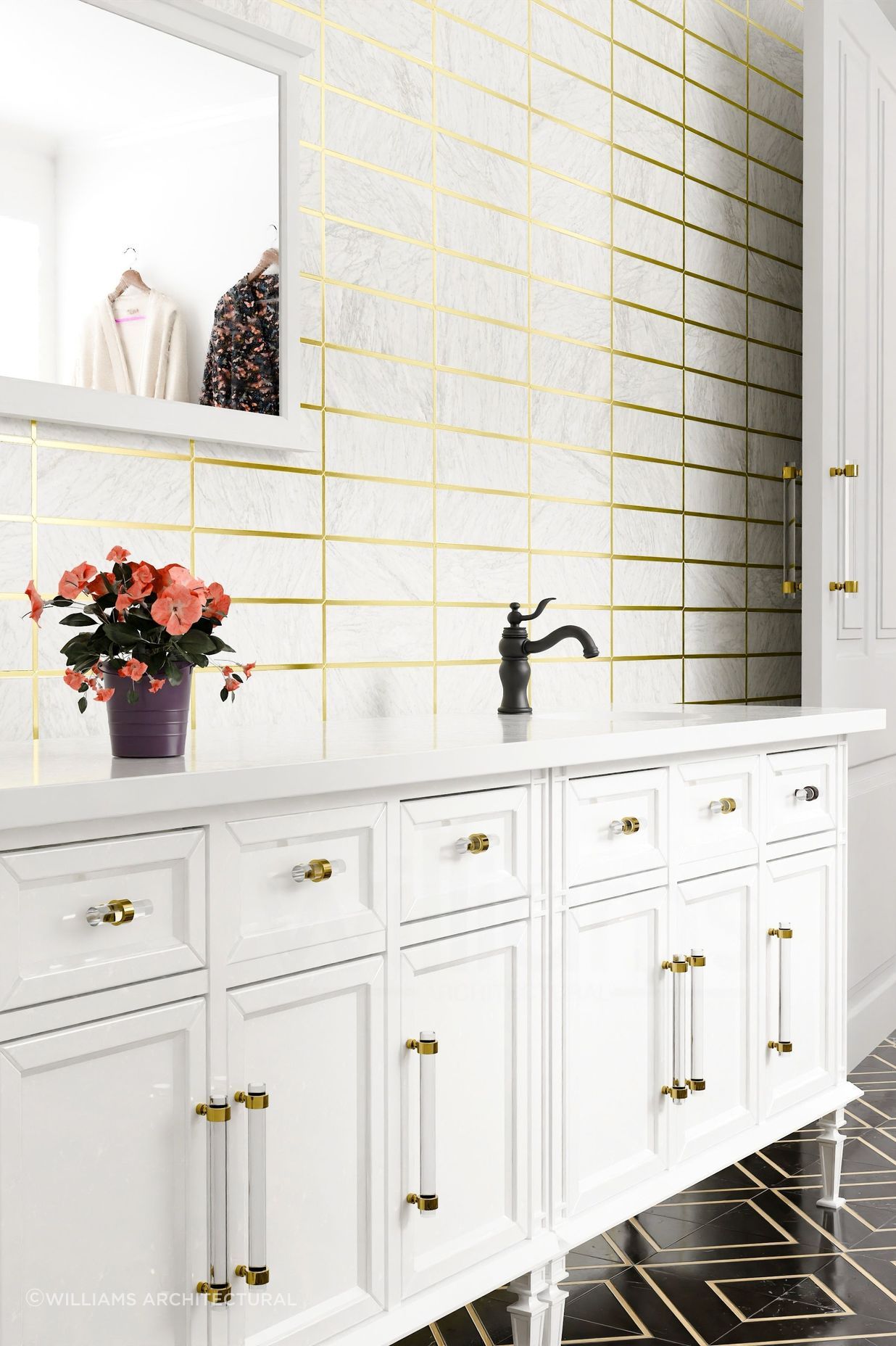 Vintage and up-cycled hardware is a major kitchen trend this year. Maximalism is surging and your hardware should have some texture and detail to match the growing trend. When looking for the right drawer pulls, look for pieces with lots of detail. Mixed materials are completely acceptable here — we are not aiming for sleek and modern in this kitchen design. The more interest a knob creates, the better.