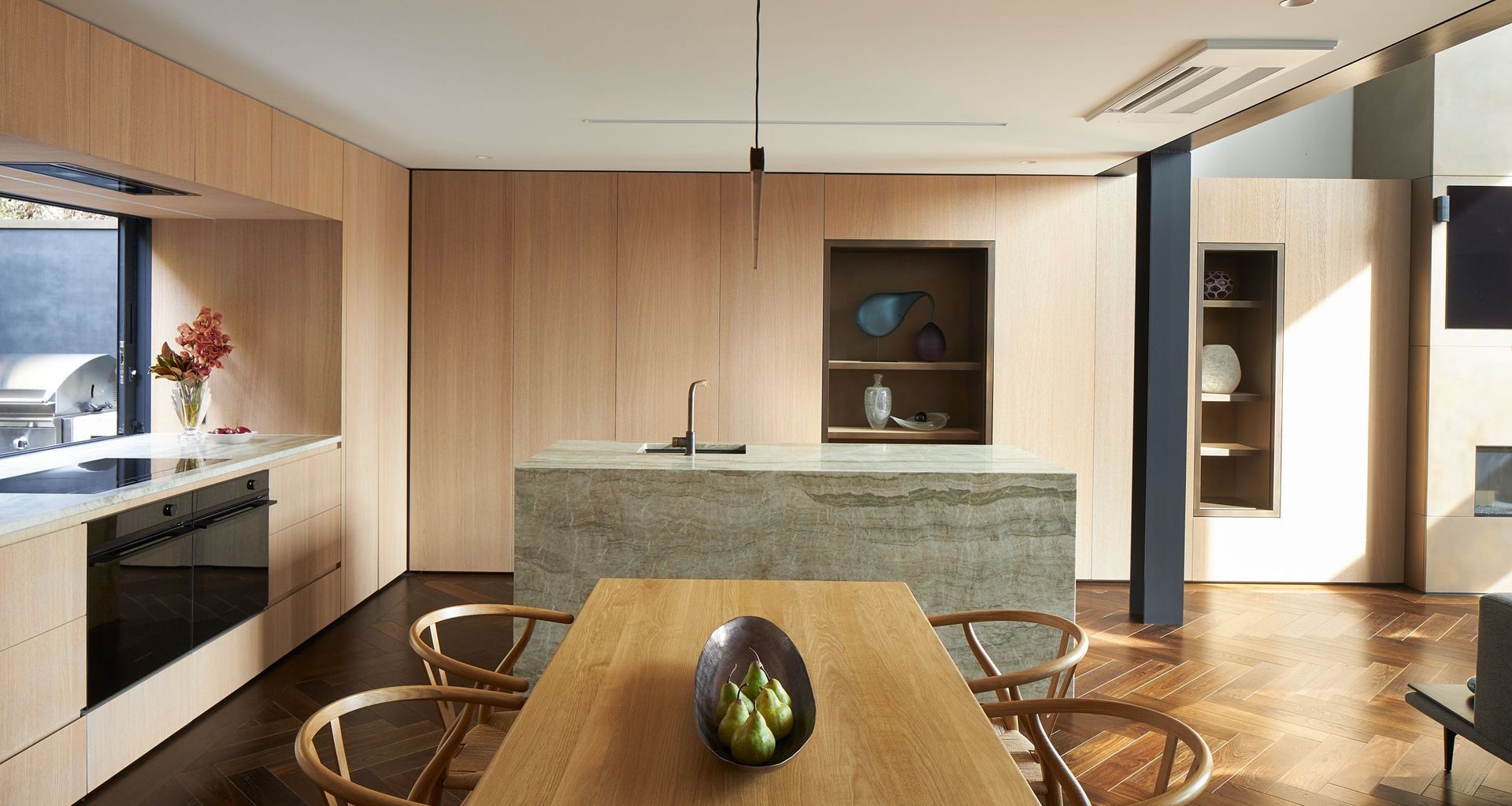 Querkus Allegro is used for joinery, cabinetry, wall and ceiling lining, bespoke furniture, and curves are also possible with Querkus Allegro Flex sheets. VidaSpace veneer sheet sizes come up to 3050mm long x 1220mm wide, to suit tall wall and joinery heights and ceiling volumes. We also offer Querkus Allegro Slats – 31 x 31mm battens for additional design detailing.