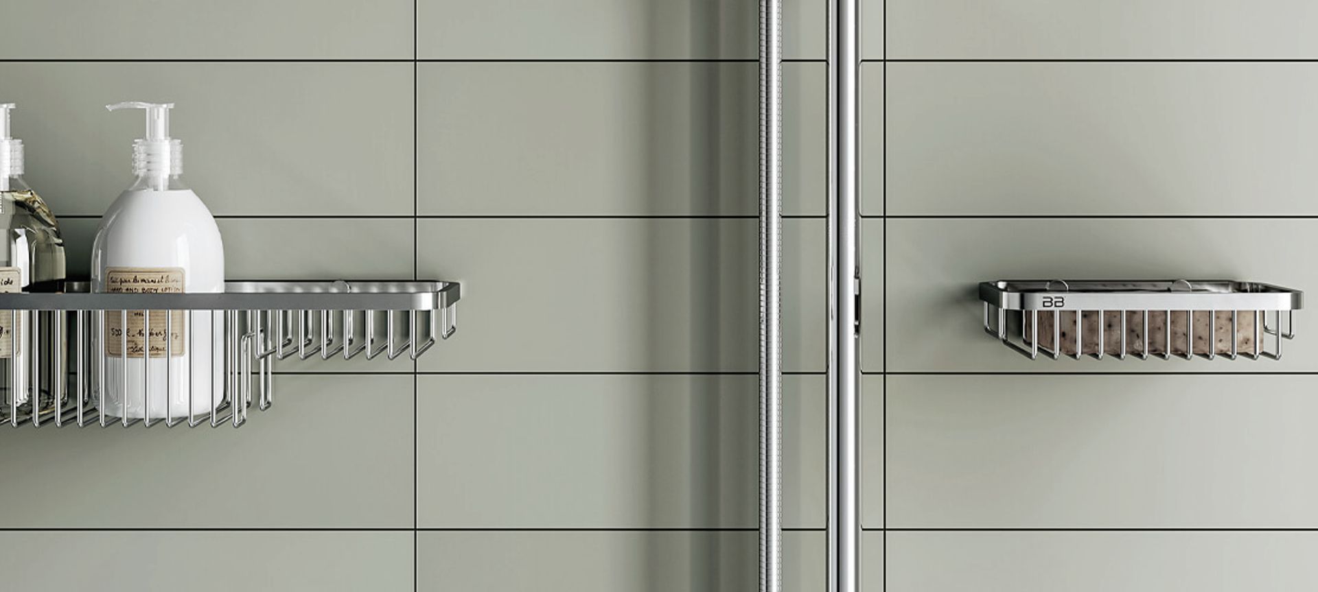 Here and now shower and soap racks