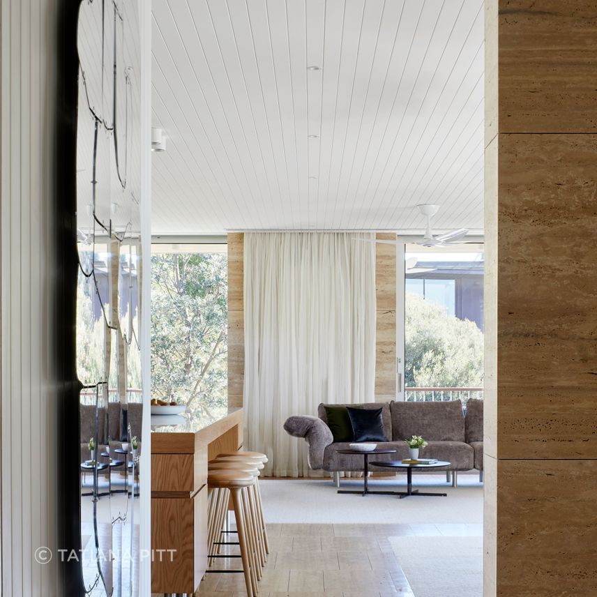 The homeowners wanted to retain the feel of a holiday house while infusing it with the comforts and aesthetics fitting their well-travelled and design-conscious background. Anne Hindley, Principal Architect and Director at Hindley & Co, embarked on this project with a clear vision: to maintain the coastal charm while adding in mid-century European architecture. The clients' fondness for mid-century classics like Rauchner and Neutra fuelled Anne's excitement, inspiring a design that pays homage to these iconic architectural styles.