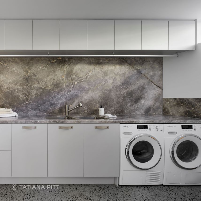“Certain details, such as the leather handle pulls on the timber joinery, evoke the work of early modernists such as McGlashan and Everist,” says Anne.
