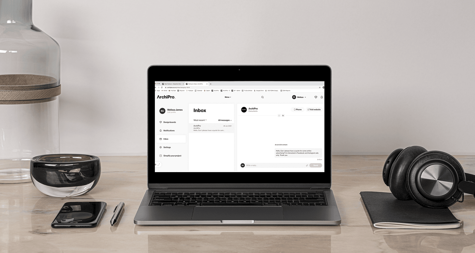 - The Inbox provides better visibility so that ArchiPro ensures responses from professionals to your enquiries are of the highest quality.
