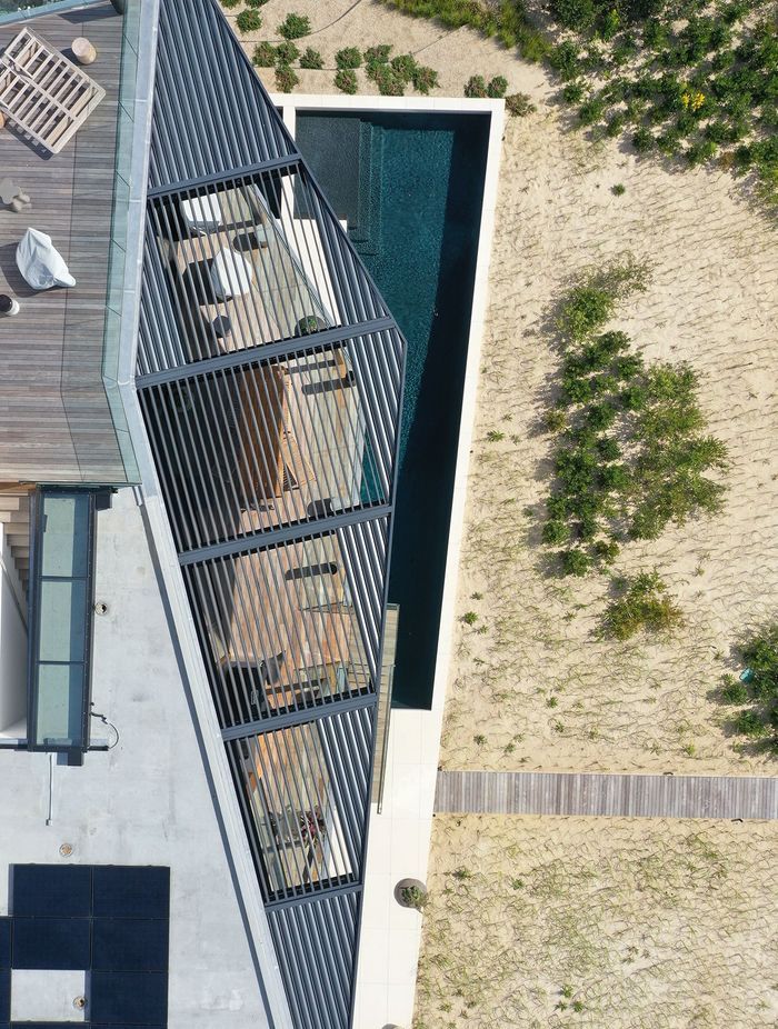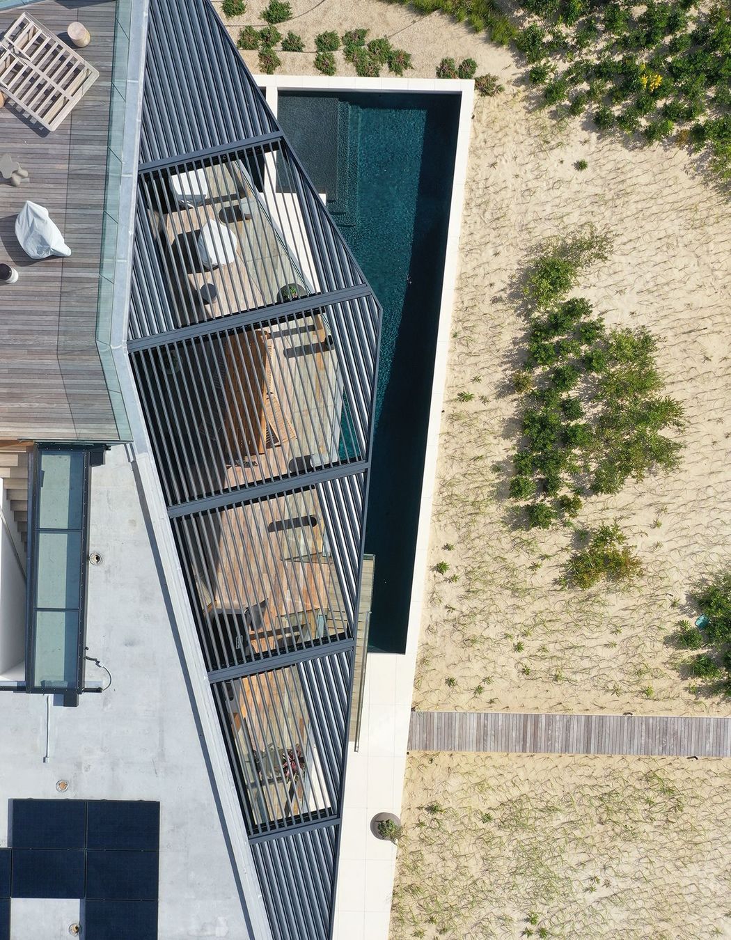 Spanning 23 metres across six sections and incorporating a complex cohort of angles is a world-class operable roof, cantilevered out towards the ocean on a post-supported frame. It is beneath this that the occupants of this summer holiday home in The Hamptons spend their days and evenings - enjoying the spectacular vistas and natural surrounds.