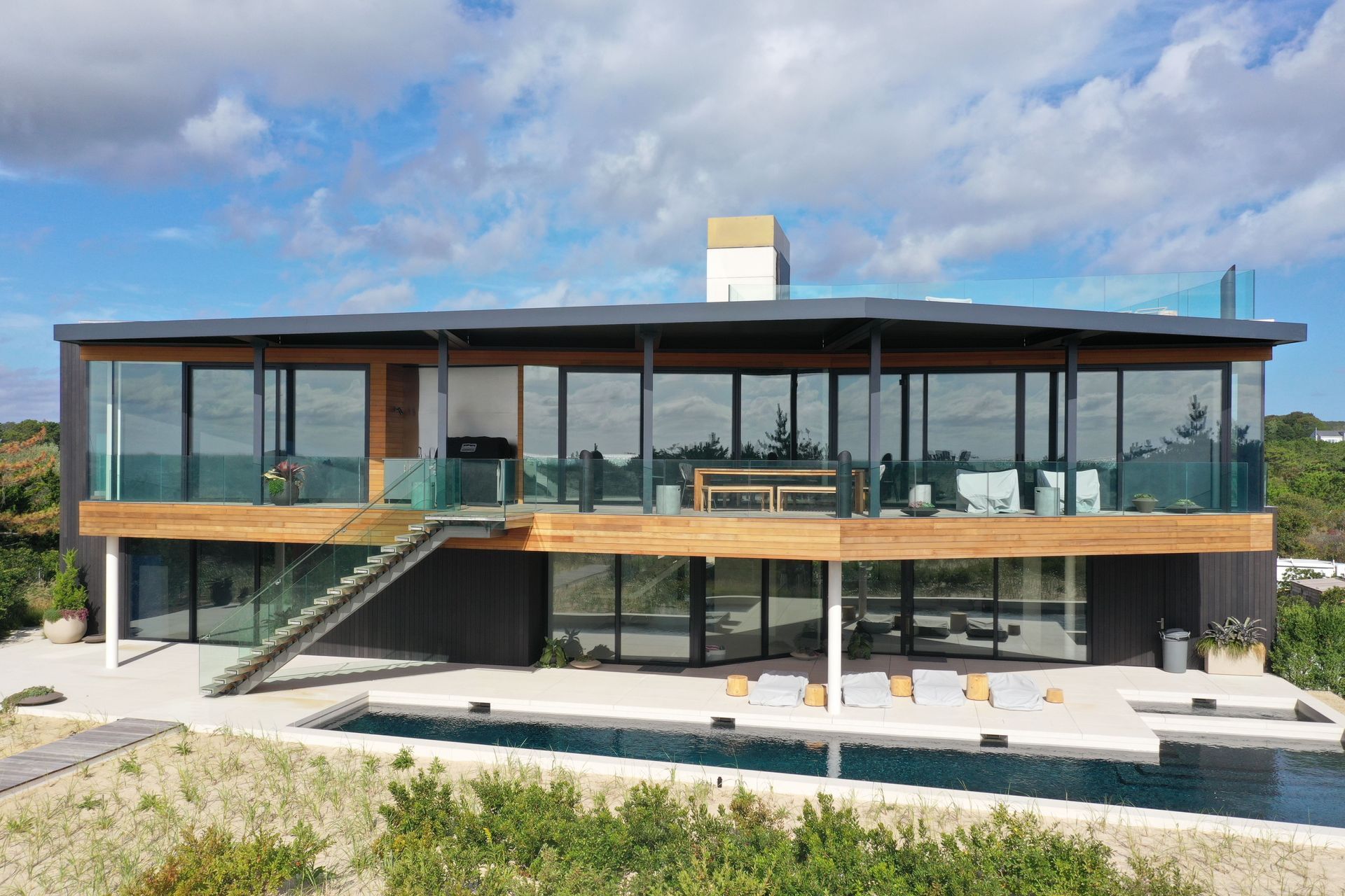 On the eastern shores of Long Island, New York, sits a home somewhat out of place. Its edgy lines and contemporary form, highlighted atop by a feat of engineering and Kiwi ingenuity, are a stark contrast to the traditional homes surrounding it.