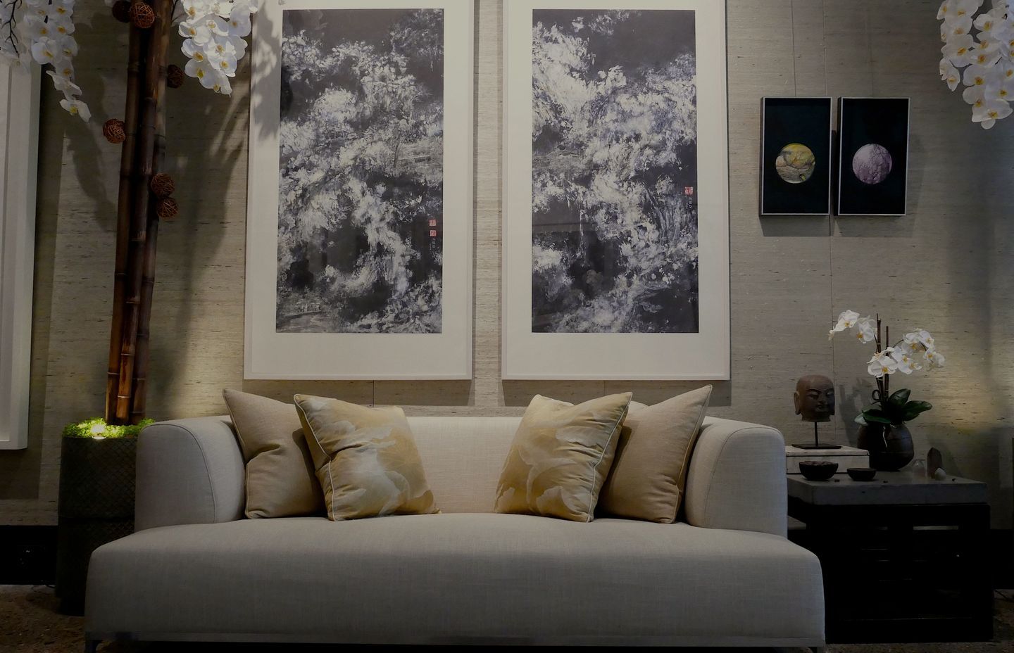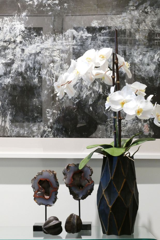 “At the studio, I’ve incorporated the art of one of Hong Kong’s foremost modern abstract ink painters, Nina Pryde, with curated objects including Burmese lacquerware, bronze and cast metal accessories and custom crystal objects.”