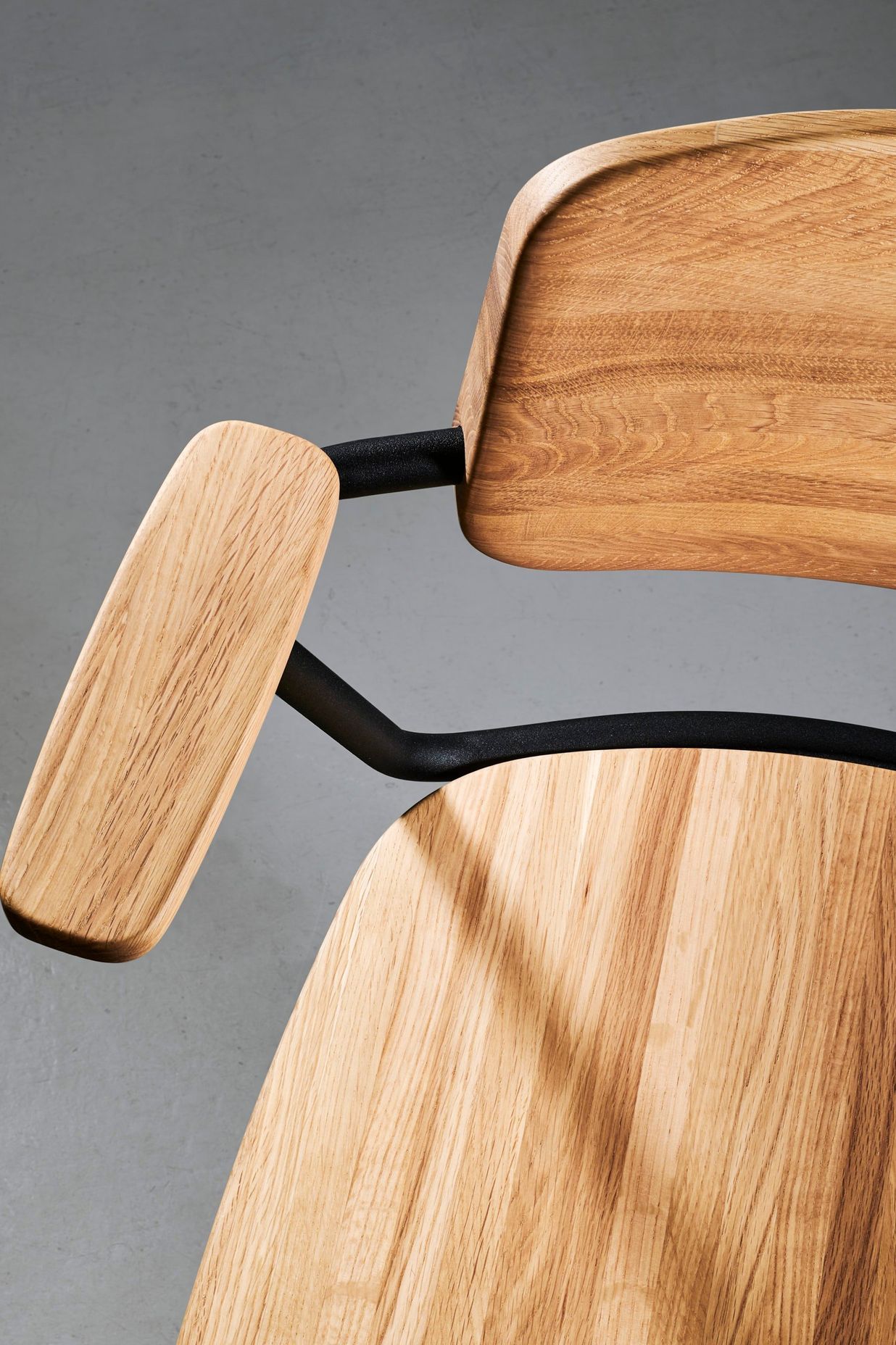 When designing the chair, BIG-GAME took inspiration from the Giroflex archive, in particular the Holson series – an iconic set of designs from the 1950s by German industrial designer Arno Votteler. Every part of the Holson that is frequently touched by the user is emphasized using wood, delicately shaped for comfort. As well as this, they were heavily informed by their own experiences with historical giroflex chairs.