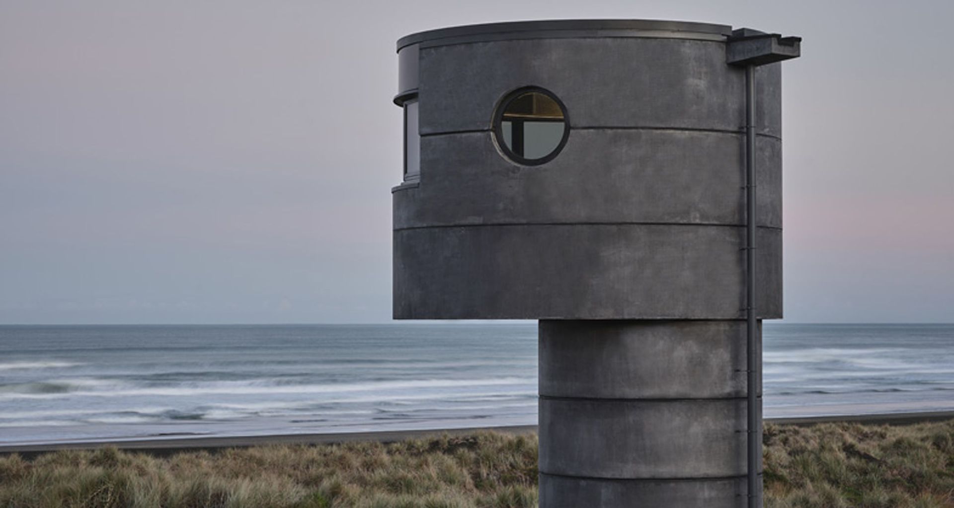 Perched amongst the black-sanded dunes, Te Pae Surf Life-saving Tower has undoubtedly found its place, just as PeterFell's 699 SuperBlack has found its match. With Piha's dark rocky headlands and native bush forming the backdrop, the tower's dark, cylindrical concrete appears to be of the same language. It speaks to the land that it belongs to, from the distant hilltops back down to the beach's fine dark sands.