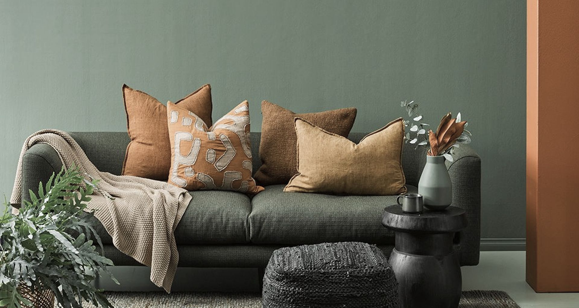 Deep green sit in harmony within a rich, natural palette.
