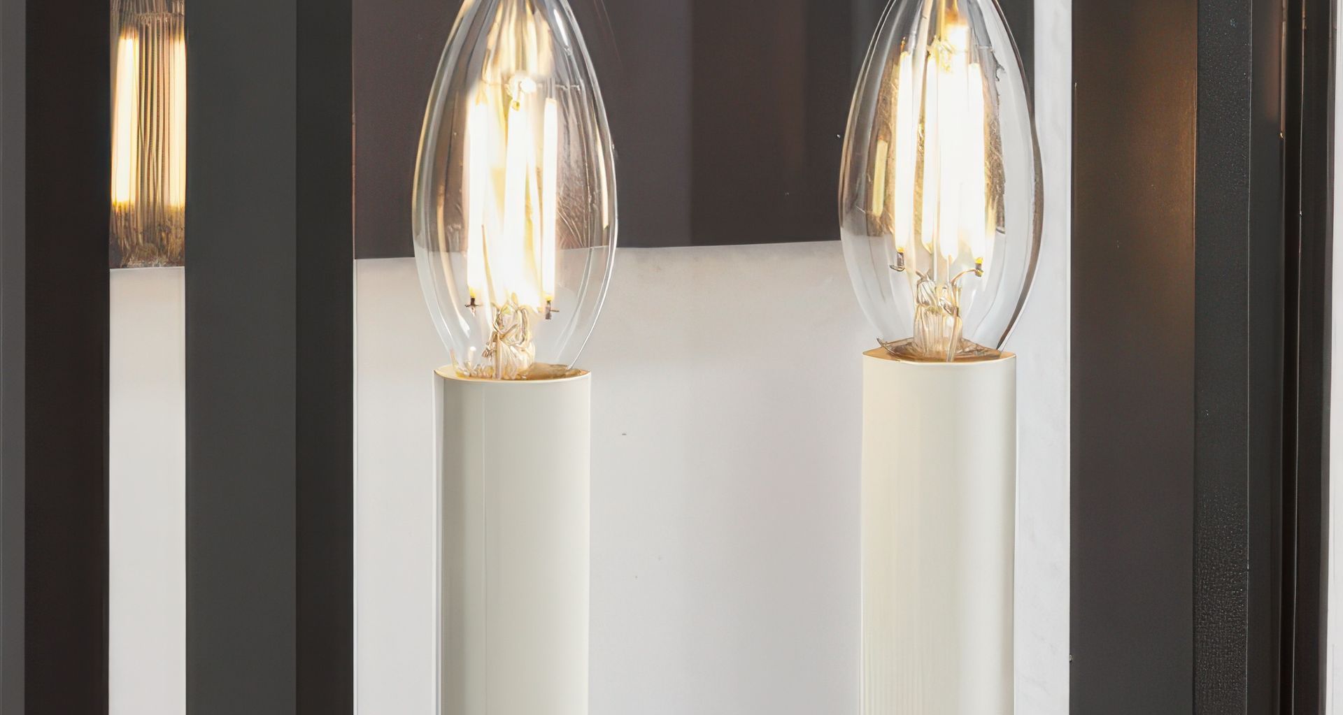 The Robertson wall lantern is defined by clean lines, negative space, and a sleek rectangular backplate, together creating a layered frame. The open, airy silhouette houses slender off-white candles surrounded by clear glass panels, ensuring optimal illumination. Finished in textured black, it adds a touch of modern elegance to any exterior.