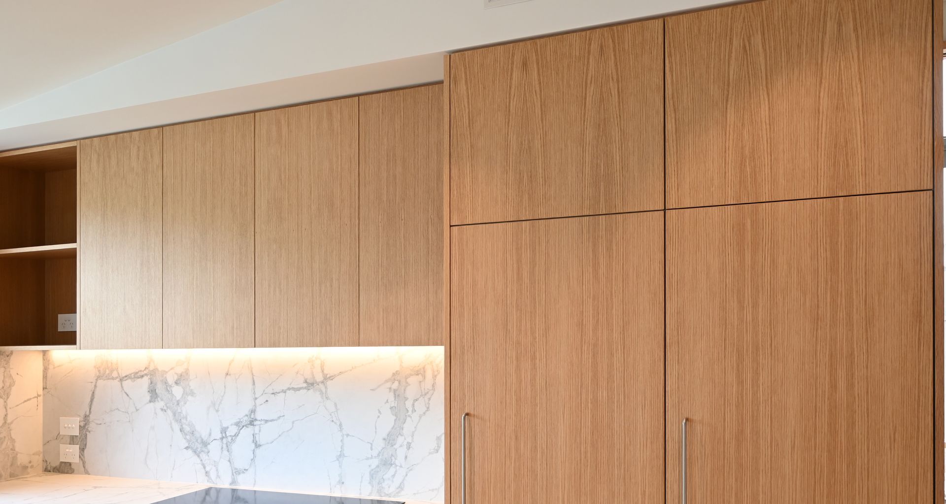 From feature strip lighting in wardrobes and shower nooks to sensor-activated strip lighting behind the kitchen splashback, every detail enhances both aesthetics and functionality. Hallway and staircase sensor lights provide effortless illumination, while under-cupboard kickboard lighting adds a stylish and practical touch to the kitchen.