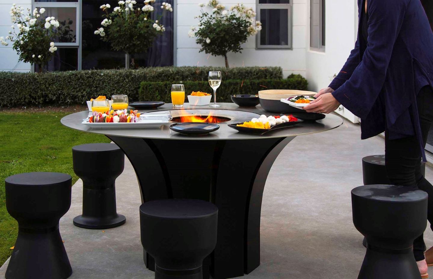 Unlike traditional barbeques, which are generally placed up against a fence or a wall and are designed for just one or two cooks, the Fire Table is circular in form allowing it to become centrepiece. Due to the vortex design and smokeless operation, it doesn’t need to be sheltered from wind when cooking, becoming a versatile piece of furniture that offers more options in terms of placement.