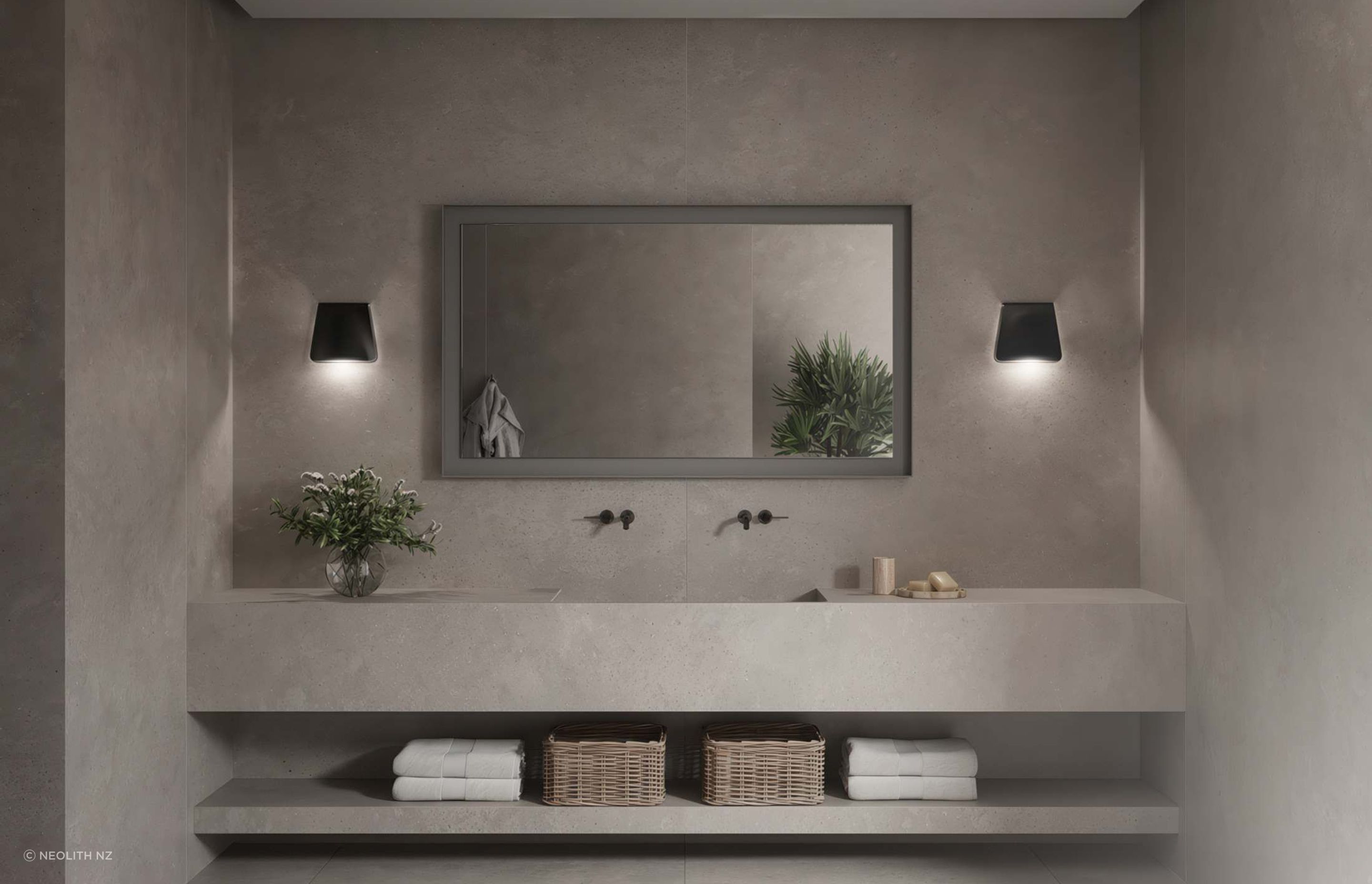 Cladding, flooring and bathroom countertop with Neolith Artisan.