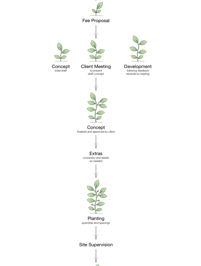 After our initial visit with you, we get create a bespoke fee proposal including a brief which outlines your needs. We use this brief as a directive throughout the whole design process. We also include in our fee proposal letter, indications for how much our services will cost you for your personalised landscape design.