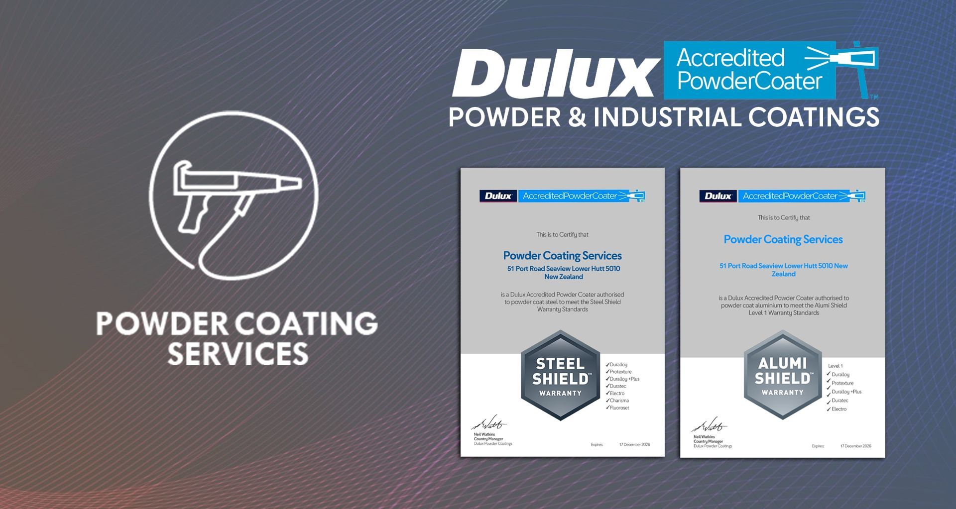 As a Dulux Accredited Powder Coater, we have demonstrated our ability to meet rigorous quality requirements and international standards, allowing us to offer Dulux Alumi Shield and Steel Shield warranties. We are one of the few powder coaters in New Zealand to offer Dulux warranties for both Aluminium and Steel as an Accredited Powder Coater.