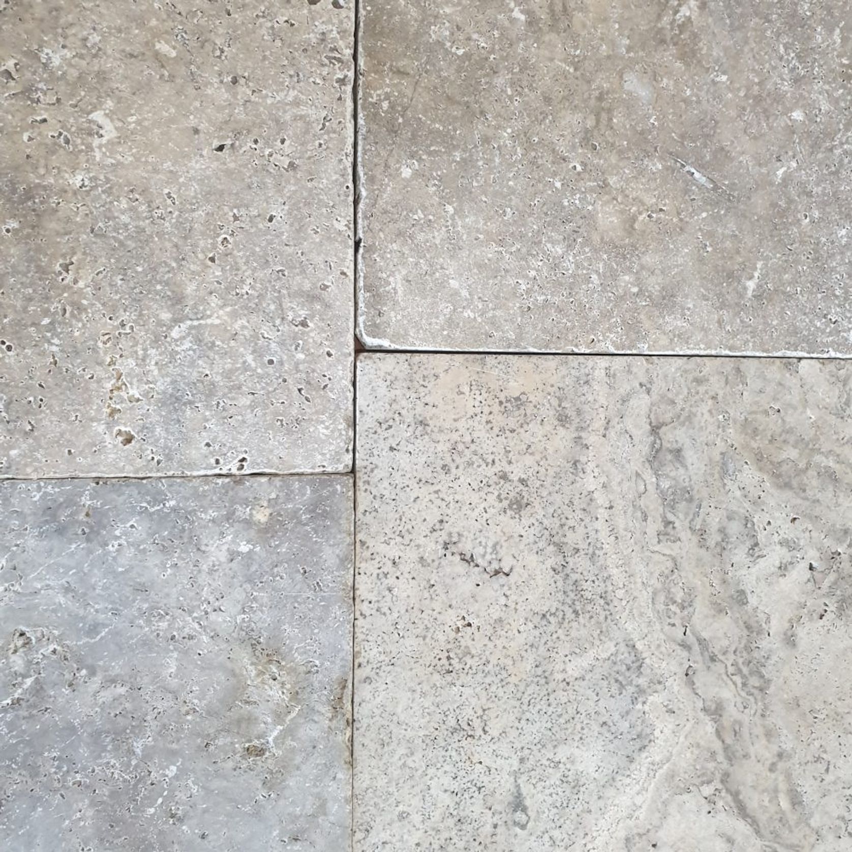 30mm Classic Silver Travertine French Pattern Pavers - Tumbled & Unfilled - Select Grade