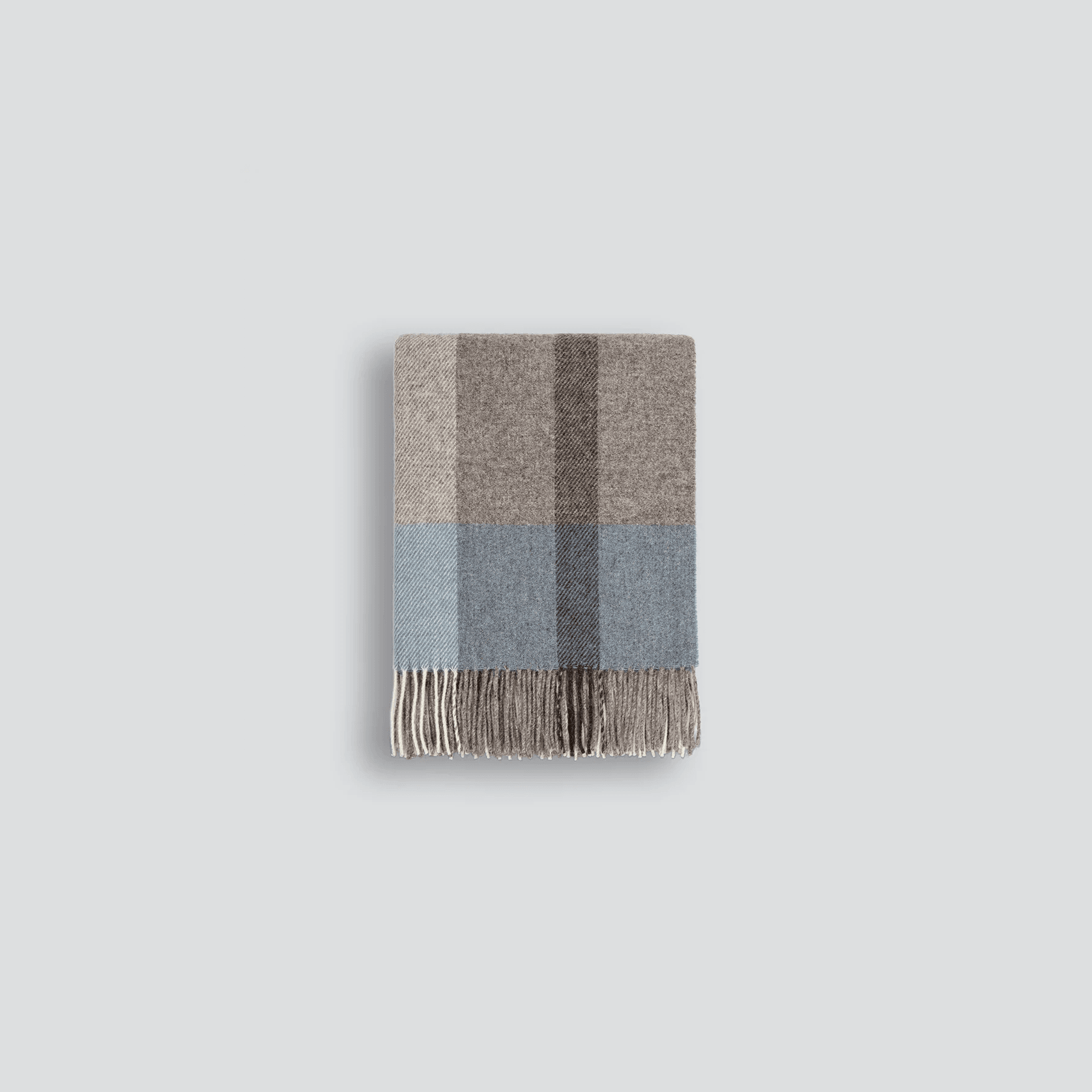 Featuring an offset plaid design, a modern take on country style is celebrated in this luxurious, pure wool throw. Crafted from New Zealand grown wool, the timeless design and sky-blue elements create a reassuring sense of warmth and comfort. Each throw is finished with a traditional twisted fringe.