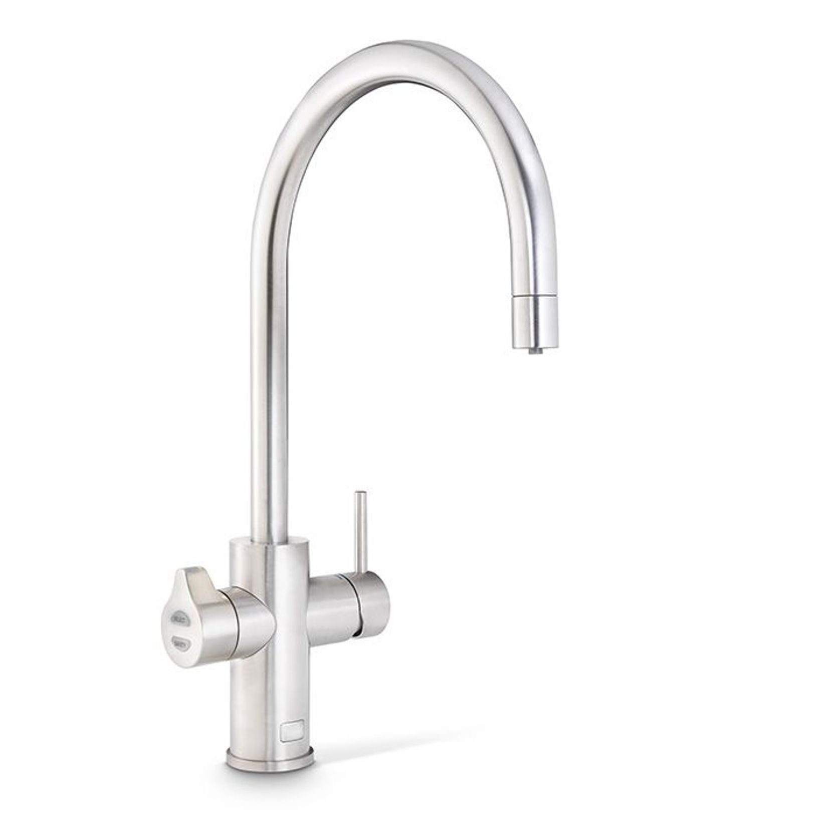 Zenith HydroTap Design Range CELSIUS Boiling Filtered water, plus Hot and Cold washing up water from a single tap. The system features a single under bench command centre including full colour interactive touch screen display with pin code protection and customisable settings including boiling water safety mode, 3 energy saving modes including ON/OFF timers and 2 hour sleep mode, SteriTouch® antimicrobial protection impregnated into key water paths for enhanced hygiene, and 0.2 micron water filtration.