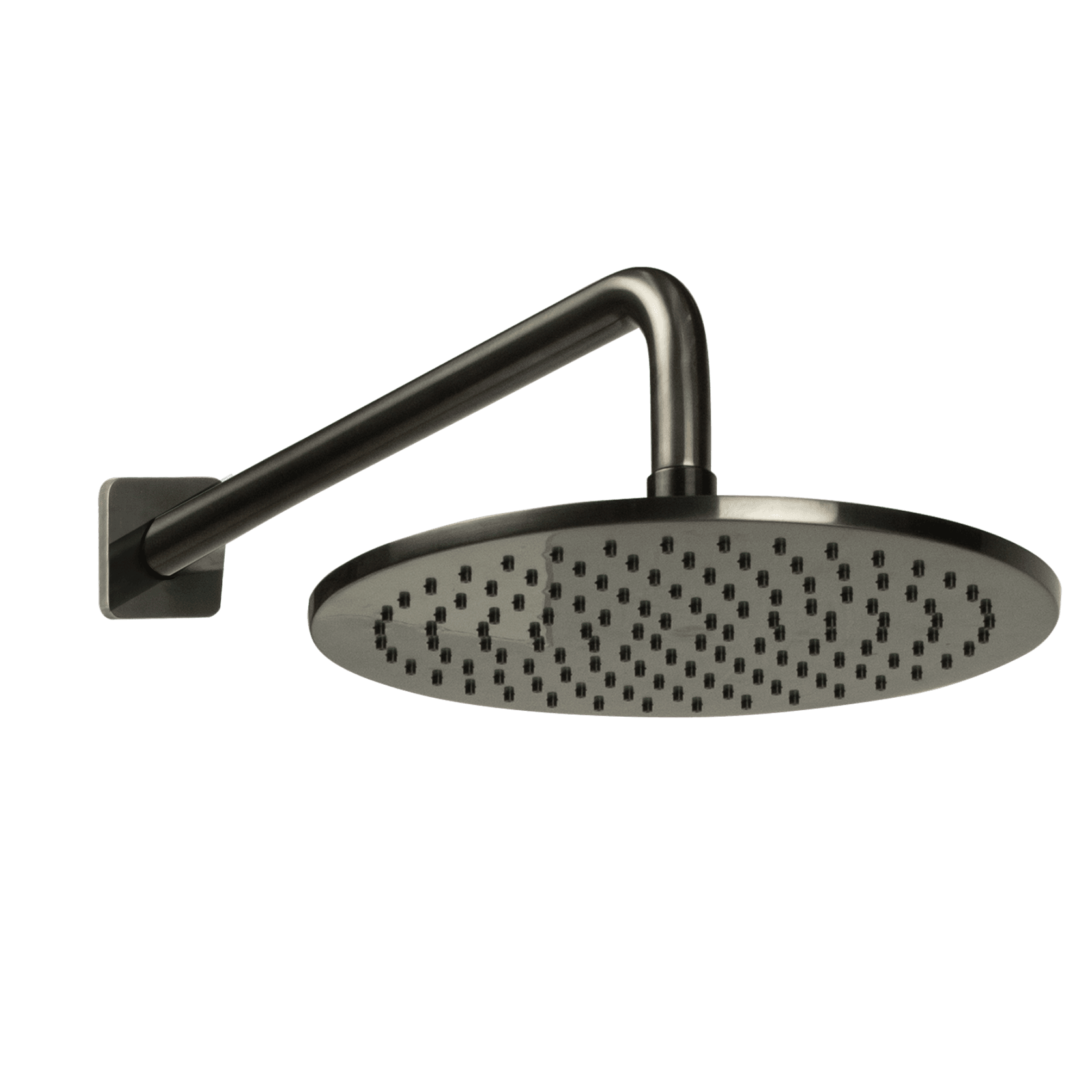Wall mounted rain shower dump rose and arm in gun metal.