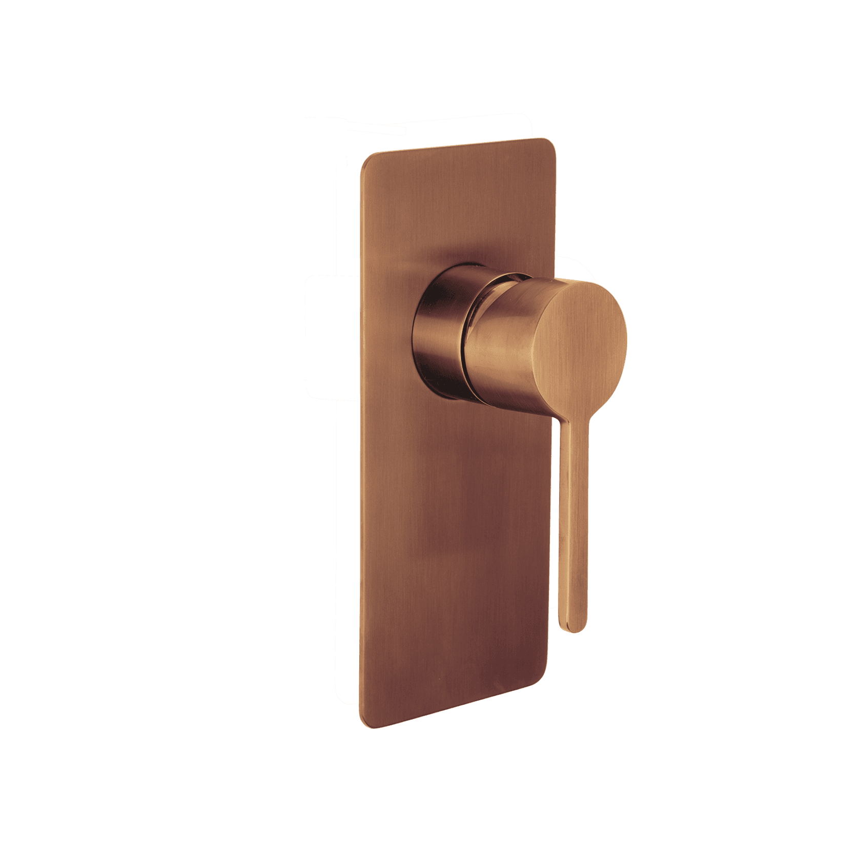 Shower or bath mixer finished in brushed copper.