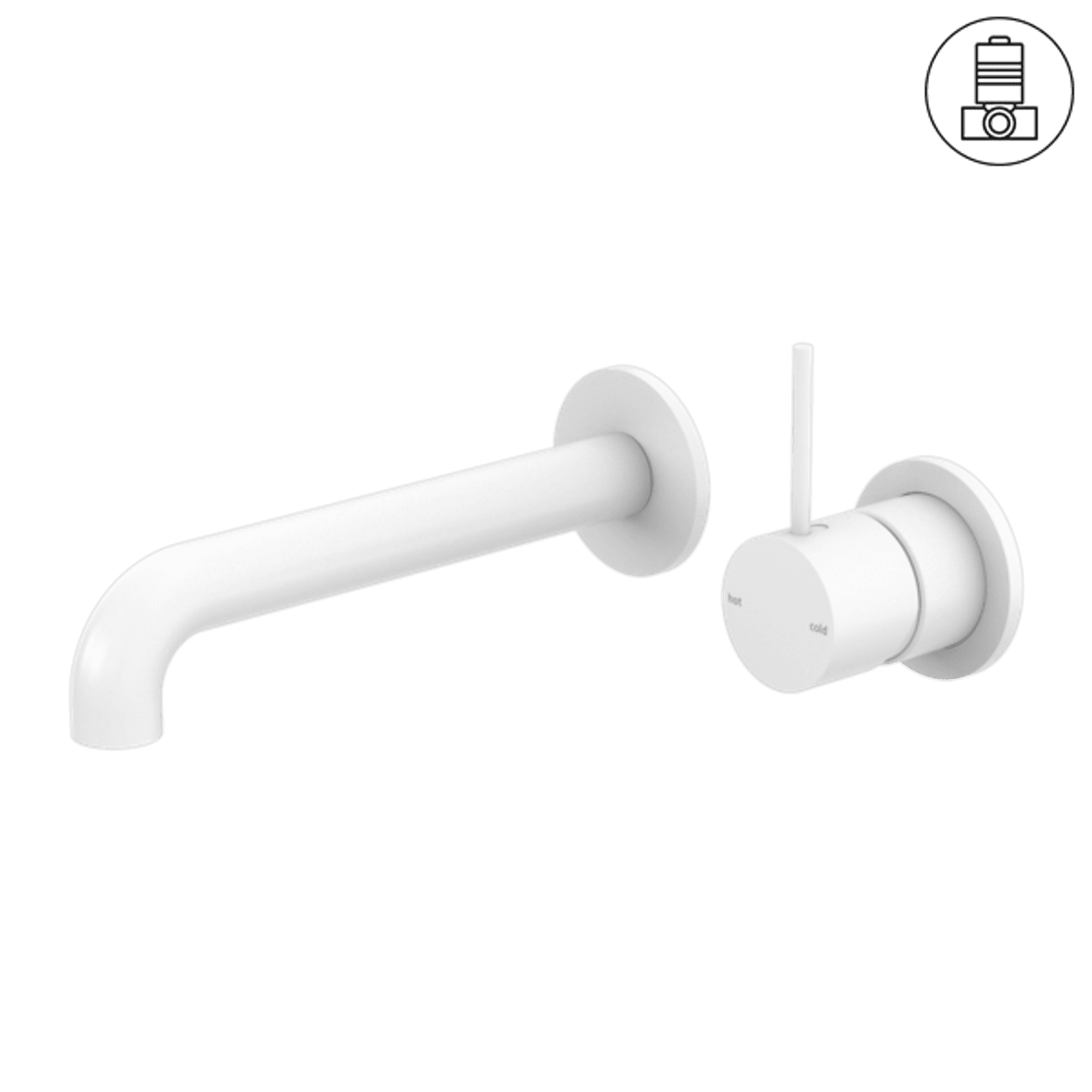 Mecca Wall Basin/Bath Mixer Separate Back Plate Handle Up 260mm Matte White
