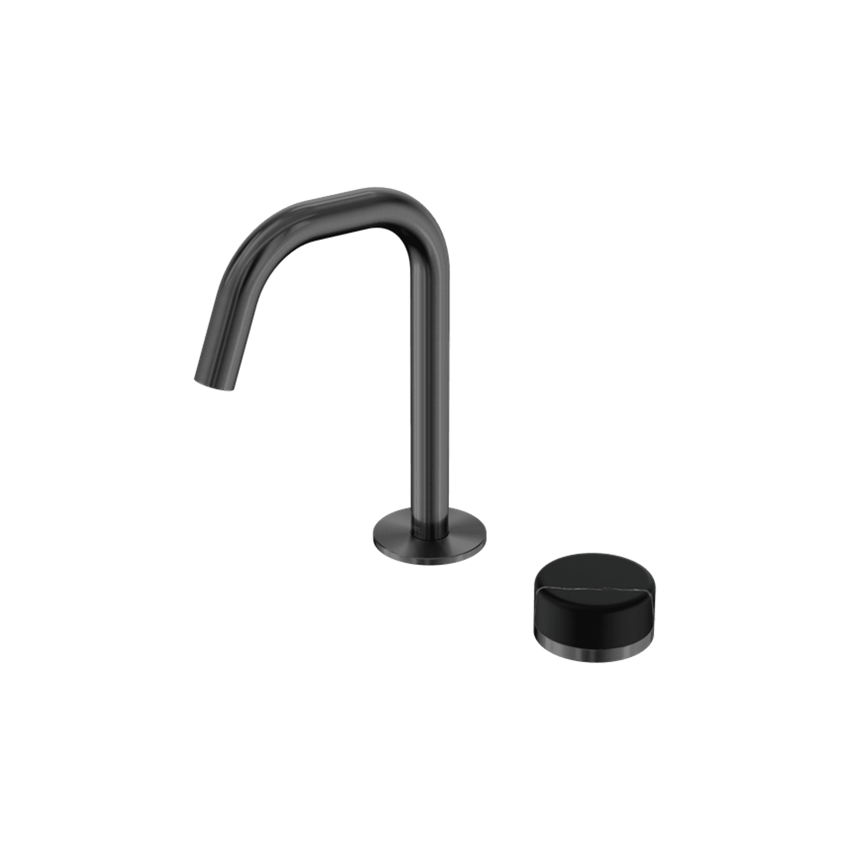 Serenity Basin Mixer Edge Spout Marquina Black Handle Gun Metal