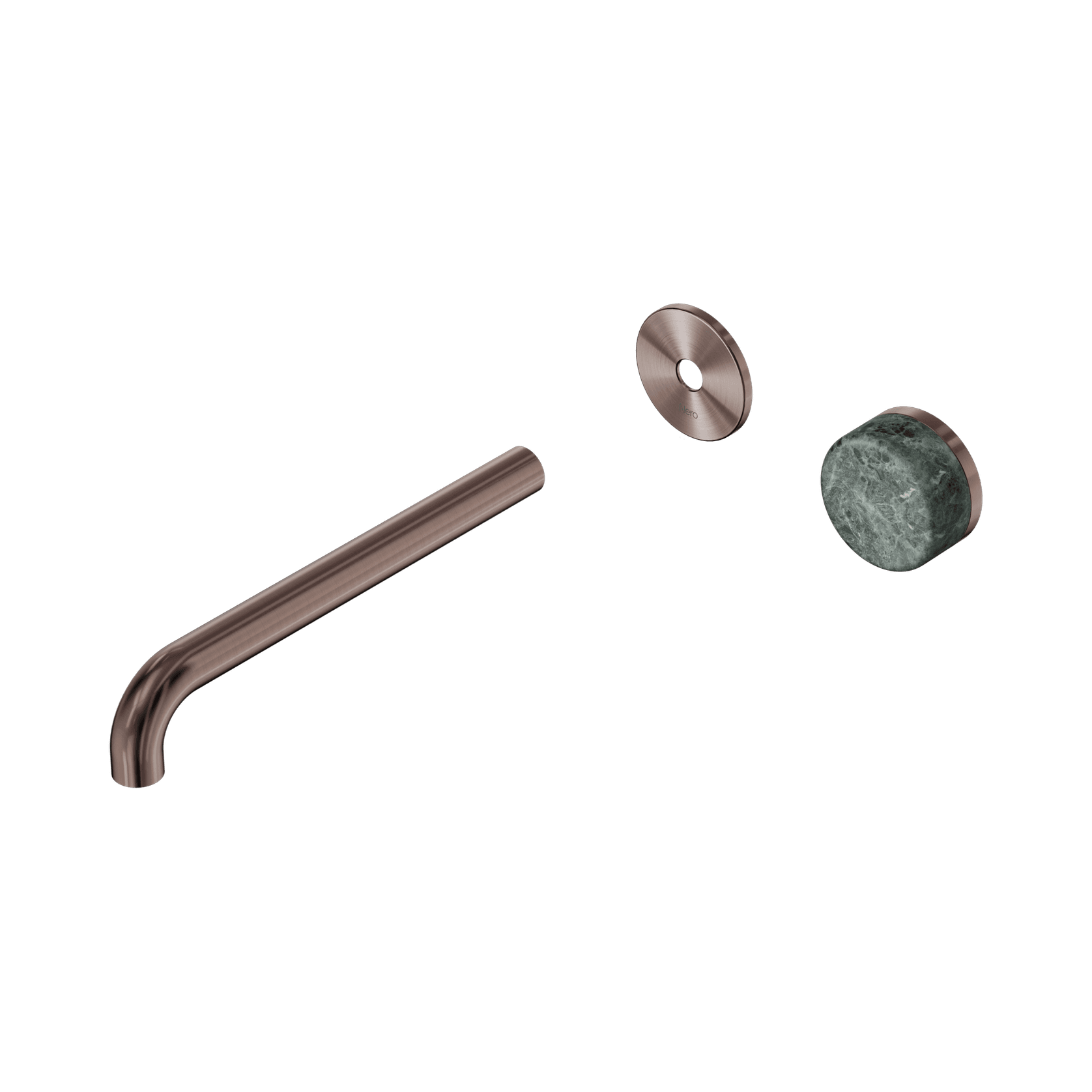 Serenity Wall Basin Mixer 220mm Spout Verde Alpi Handle Brushed Bronze