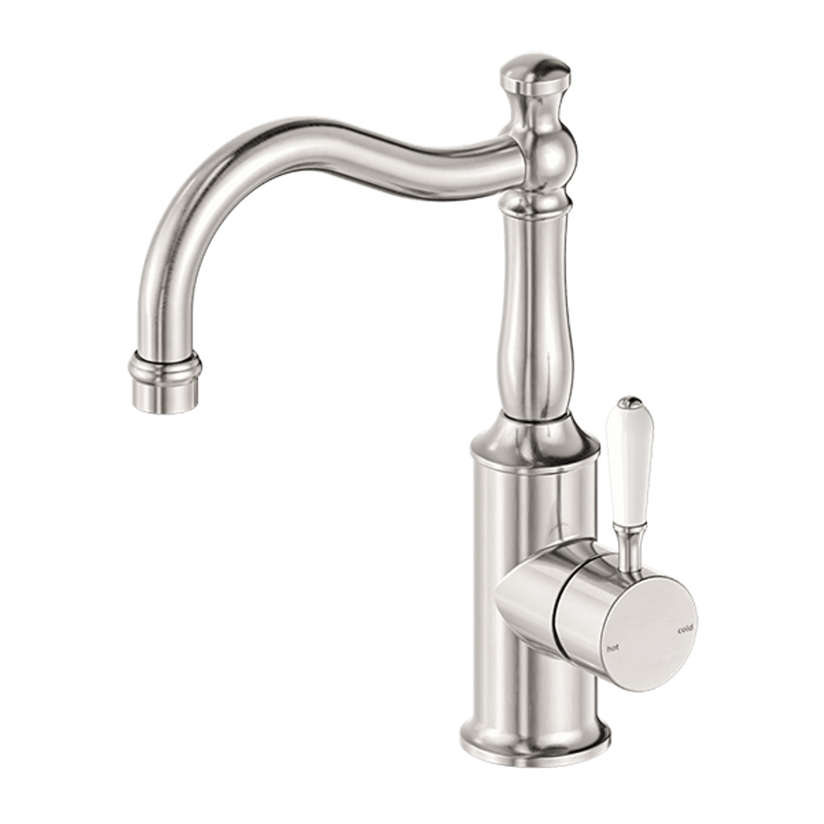 York Basin Mixer Hook Spout With White Porcelain Lever Brushed Nickel