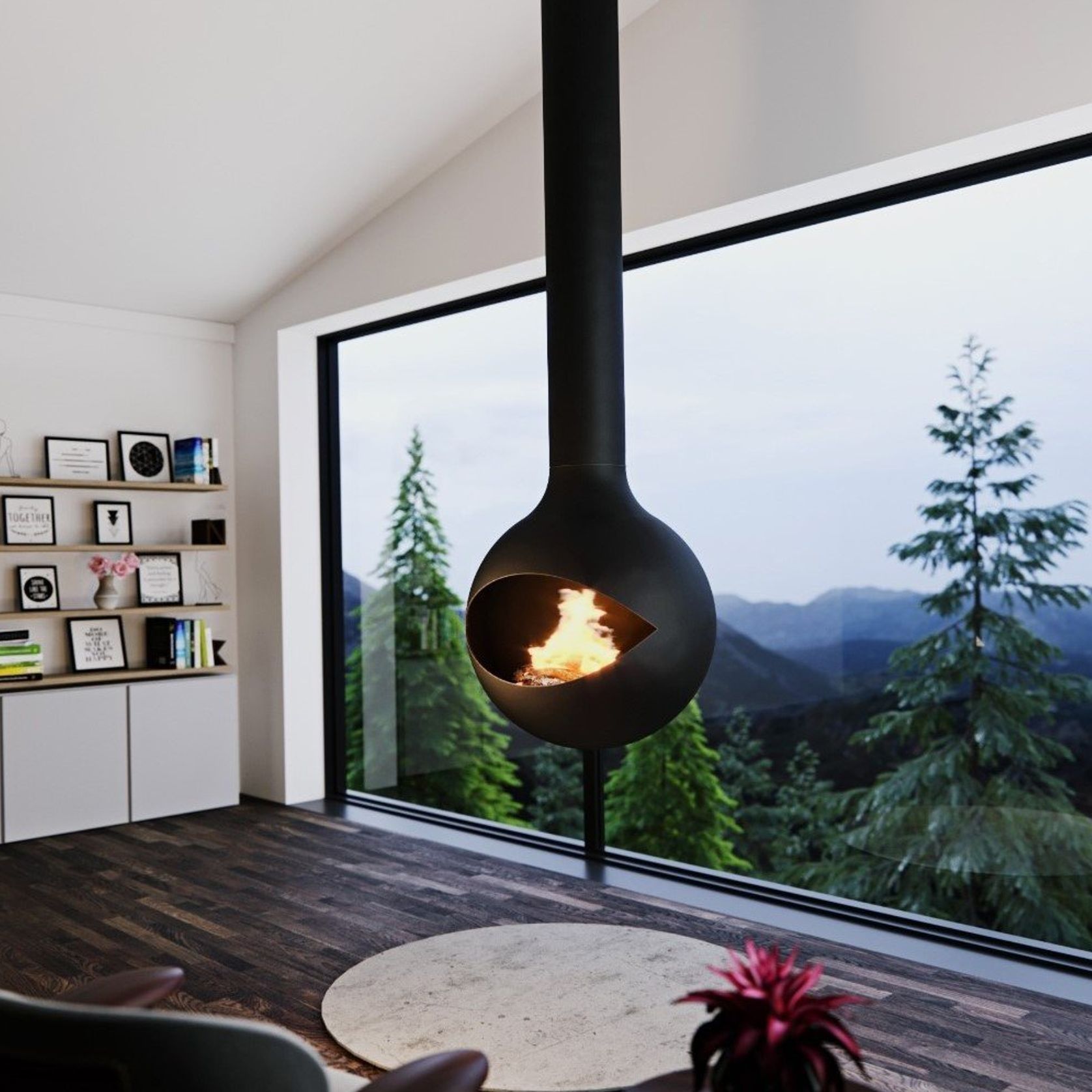Zen Suspended Occio Wood Fireplace