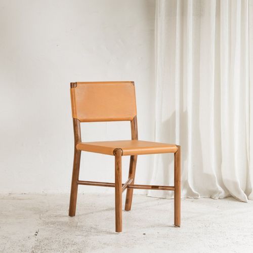 Larah Leather & Teak Chair - Tan