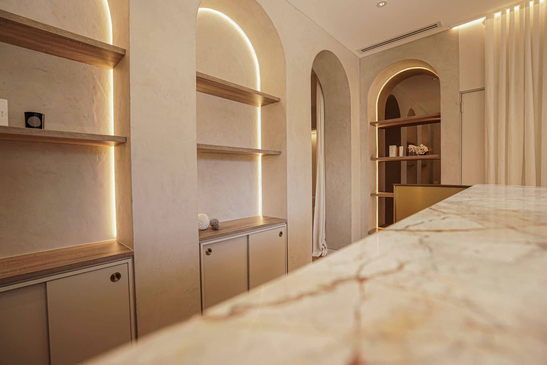 • Microcement walls