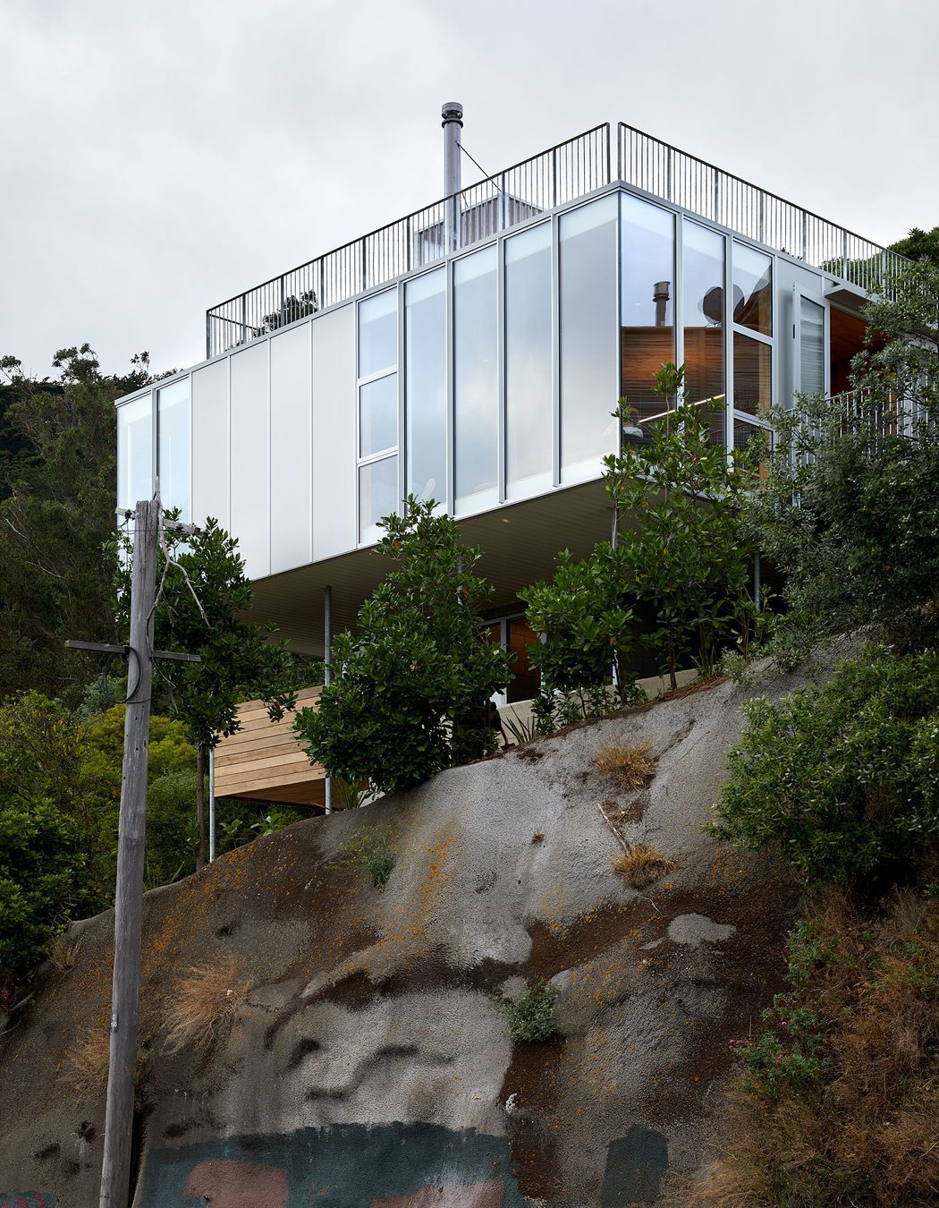 ArchiPro Project Summary - A contemporary single-level residence in Wellington, featuring stunning views, three bedrooms, an office, and a rooftop deck, designed for comfort and outdoor living.